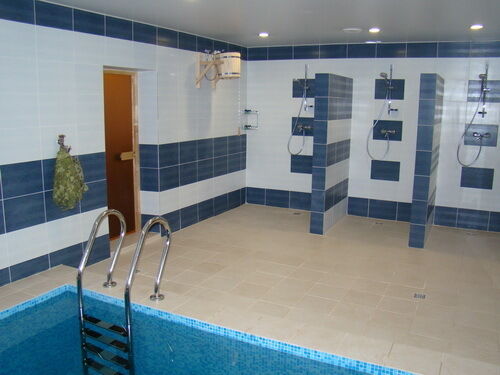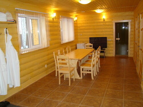 - VIP-баня:русская баня, массажная комната, бассейн, гостиная с TV, DVD и караоке, две комнаты отдыха с отдельными санузлами.