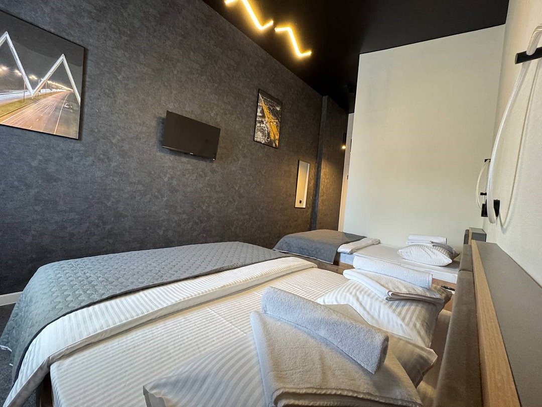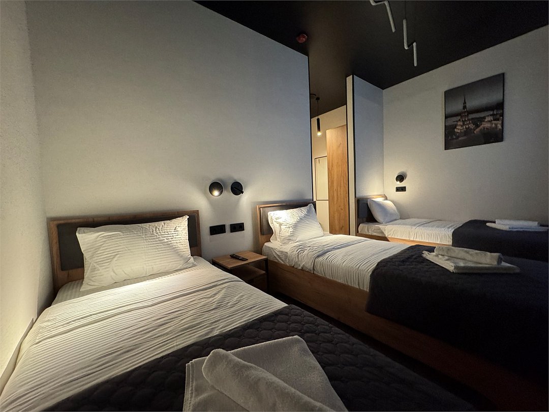 Погрузитесь в атмосферу комфорта и стиля в нашем трехместном номере в Казани! Этот просторный и уютный номер идеально подходит для вашего отдыха и прекрасно вмещает компанию друзей или семью. В номере вас ждут три отдельные односпальные кровати с ортопедическими матрасами, обеспечивающими качественный сон и полное расслабление. Элегантный и современный дизайн создает гармоничное пространство, в котором приятно проводить время. Номер оснащен плоским телевизором для ваших любимых фильмов и передач, а также быстрым Wi-Fi интернетом, чтобы вы всегда оставались на связи. В ванной комнате вас ждут гигиенические средства премиум-класса, которые добавят ощущение заботы о вас. Каждый уголок этого номера создан для вашего комфорта и удовольствия, чтобы сделать ваше пребывание в Казани незабываемым. Мы рады приветствовать вас и предоставить место, где вы сможете расслабиться и насладиться временем в компании близких!Услуги и удобства