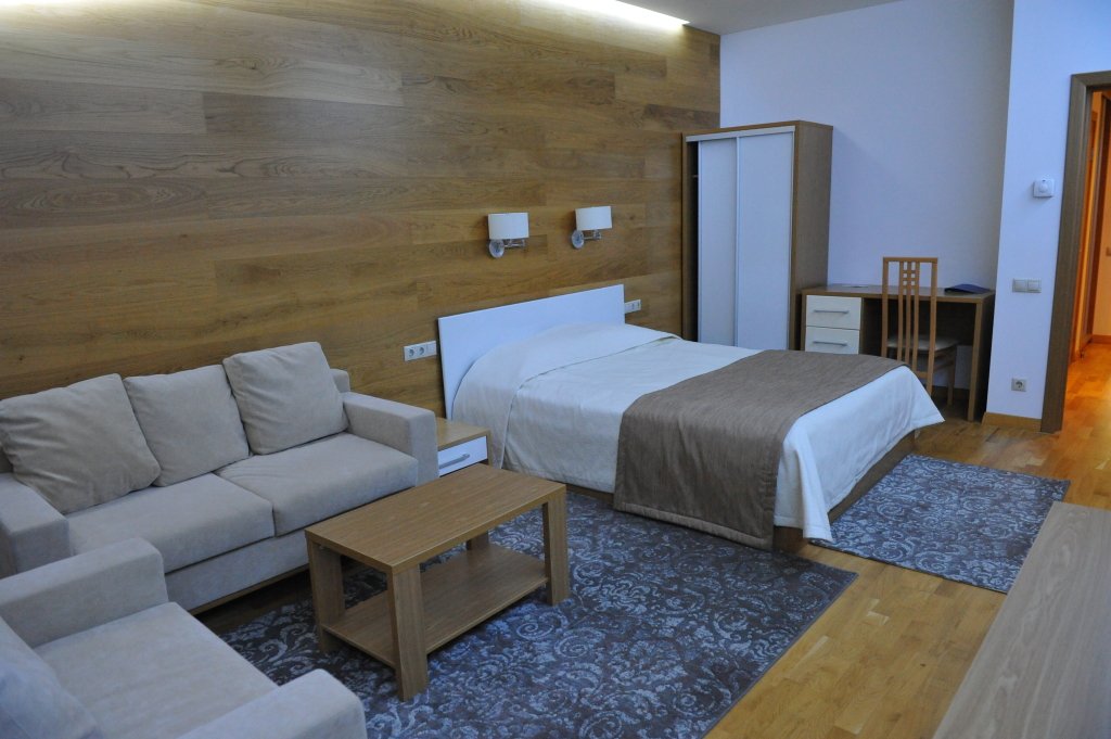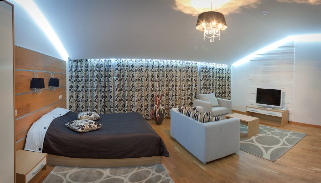 В номере вас будут ждать телевизор и мини-бар. Оснащение зависит от выбранной категории номера.
