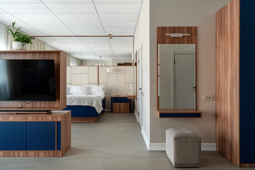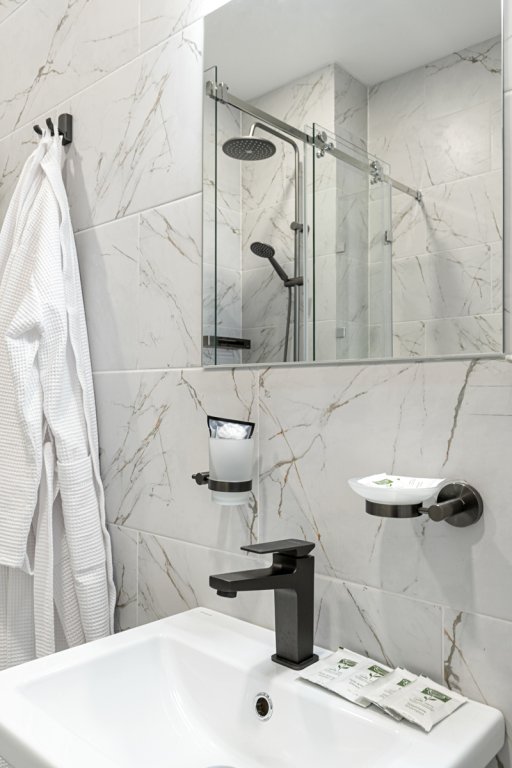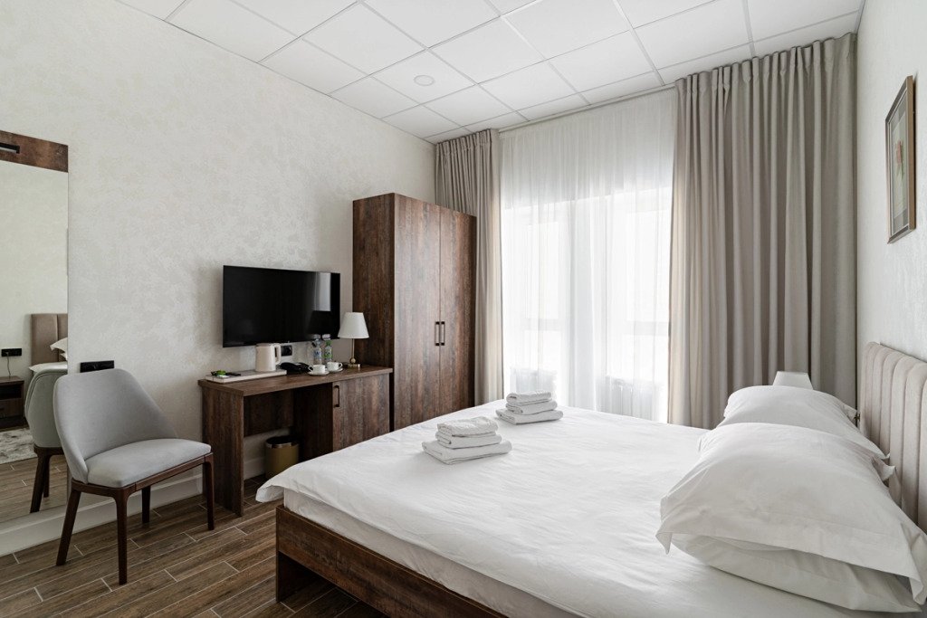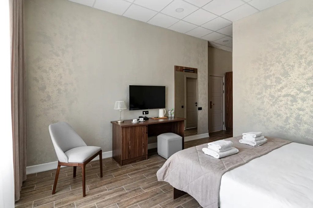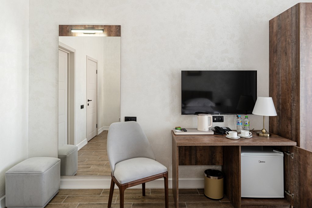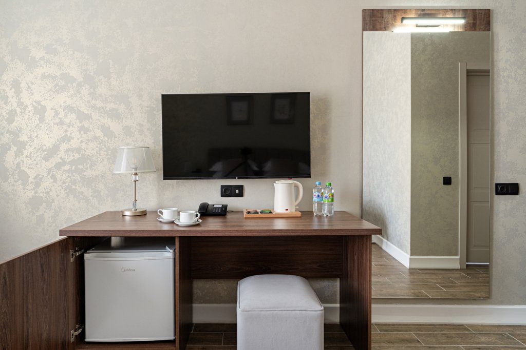 В номере гостей ждут телевизор и халат. Перечисленные услуги есть не во всех номерах.