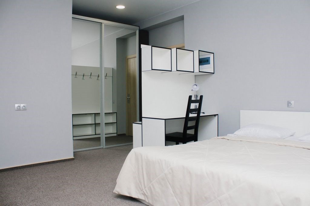 Wi-Fi, интернет, кондиционер, светильник, настольные лампы, система безопасности, электронные замки, плита для приготовления пищи, микроволновая печь, ванна или душевая кабина, двуспальная кровать, тумбы, стулья, вешалки, письменный стол, обеденный стол, зеркало, мебельный гарнитур, набор посуды, обслуживание номеров, чайник, унитаз, раковина, питьевая вода, обеденная зона, ковровое покрытие, отопление, вид на город, кулер на этаже, кухонная посуда, стаканы, кухонная утварь, столовые приборы, туалетные средства, цифровое тв, внутренний телефон, телевизор с плоским экраном, мини-холодильник, мини-кухня, шкаф-купеВ апартаментах