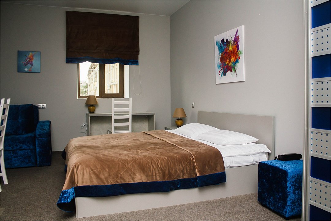 Просторный номер со всеми удобствами и двуспальной кроватью. Пастельные тона номеров создают комфортную и расслабляющую обстановку.Услуги и удобства