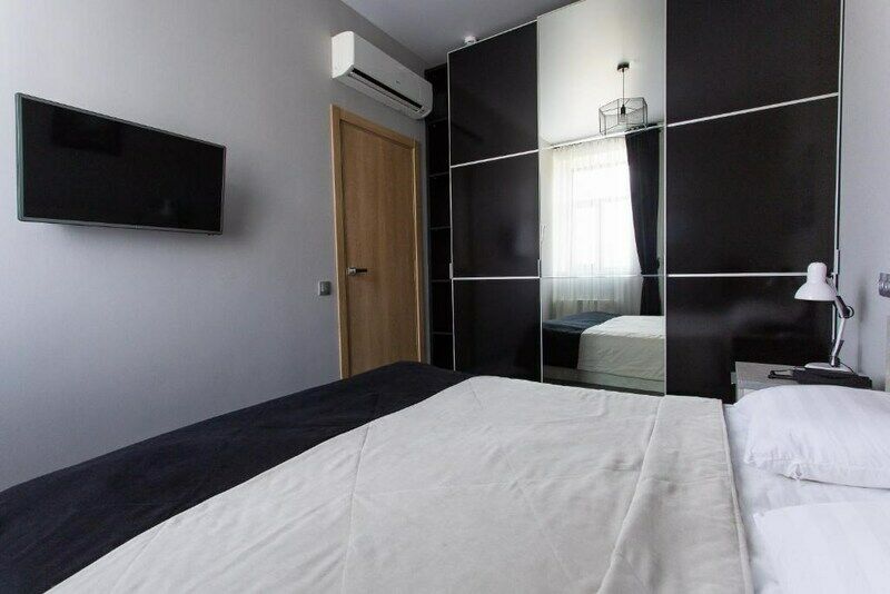 Wi-Fi, интернет, кондиционер, светильник, настольные лампы, электронные замки, микроволновая печь, ванна или душевая кабина, двуспальная кровать, стулья, шкаф для одежды, вешалки, письменный стол, зеркало, мебельный гарнитур, две комнаты, кухня, чайник, унитаз, раковина, отопление, вид на город, кухонная посуда, стаканы, столовые приборы, стол, цифровое тв, раскладной диван, внутренний телефон, телевизор с плоским экраном, мини-холодильник, шкаф-купеВ апартаментах