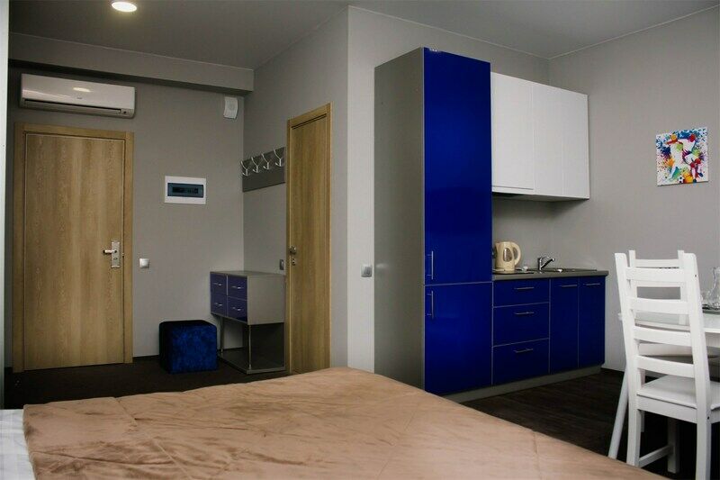 Wi-Fi, интернет, кондиционер, светильник, настольные лампы, электронные замки, плита для приготовления пищи, микроволновая печь, ванна или душевая кабина, двуспальная кровать, стулья, шкаф для одежды, письменный стол, мебельный гарнитур, кухня, набор посуды, обслуживание номеров, чайник, унитаз, раковина, отопление, вид на город, кухонная посуда, стаканы, столовые приборы, стол, цифровое тв, раскладной диван, внутренний телефон, телевизор с плоским экраном, мини-холодильник, шкаф-купеВ апартаментах