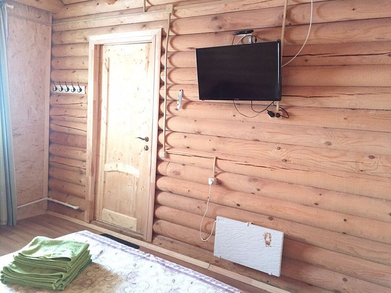 Площадь номера 40 кв.м. В номере: , гостиная, кухня,сауна, телевизор, посуда, микроволновая печь, электрочайник, кухонный гарнитур, холодильник, вода, мангал. В ванной: туалет, раковина, душевая кабина, зеркало, набор полотенец.