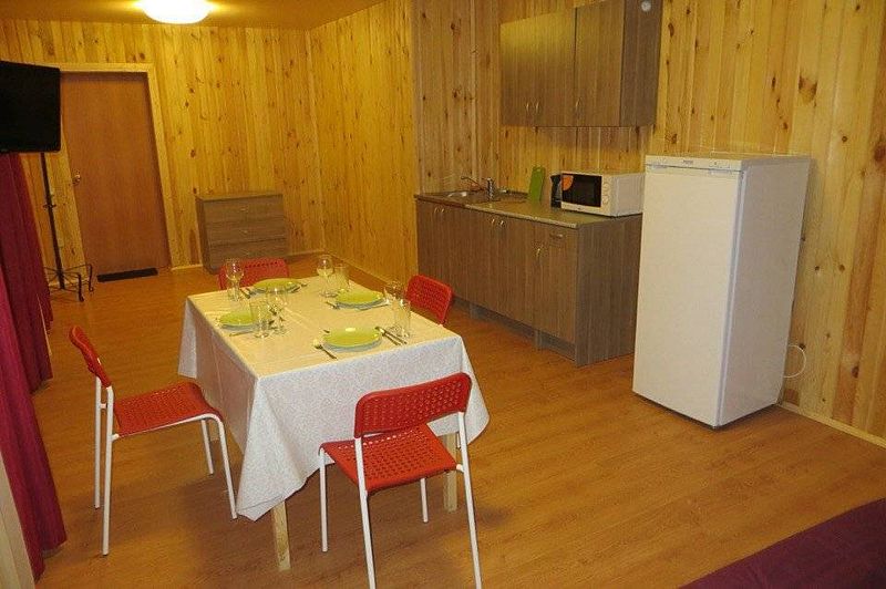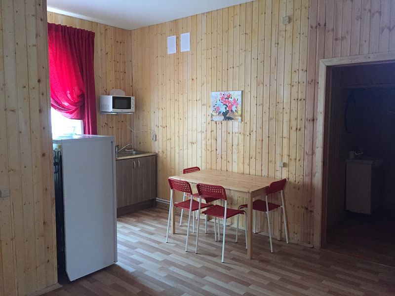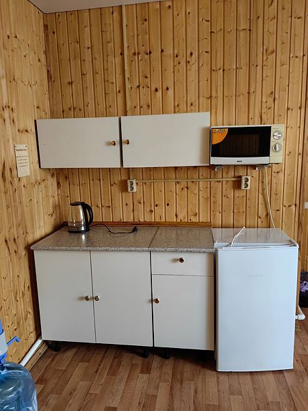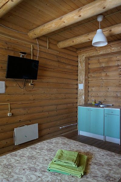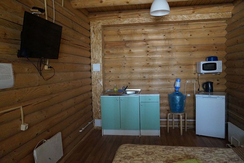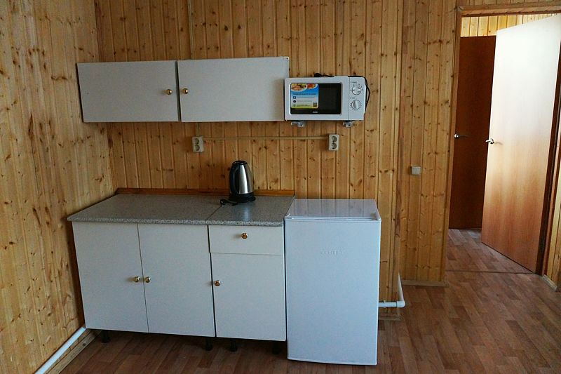 Двухместный номер стандарт, с отдельным входом. Внутри номера душ и туалет, спальня, обеденная зона. В кухонном уголке : микроволновка, чайник, холодильник. Питьевая вода. Из посуды: тарелки плоские и глубокие, столовые приборы, чашки, стаканы, фужеры, рюмки.