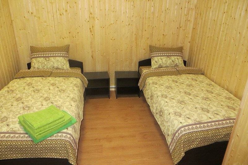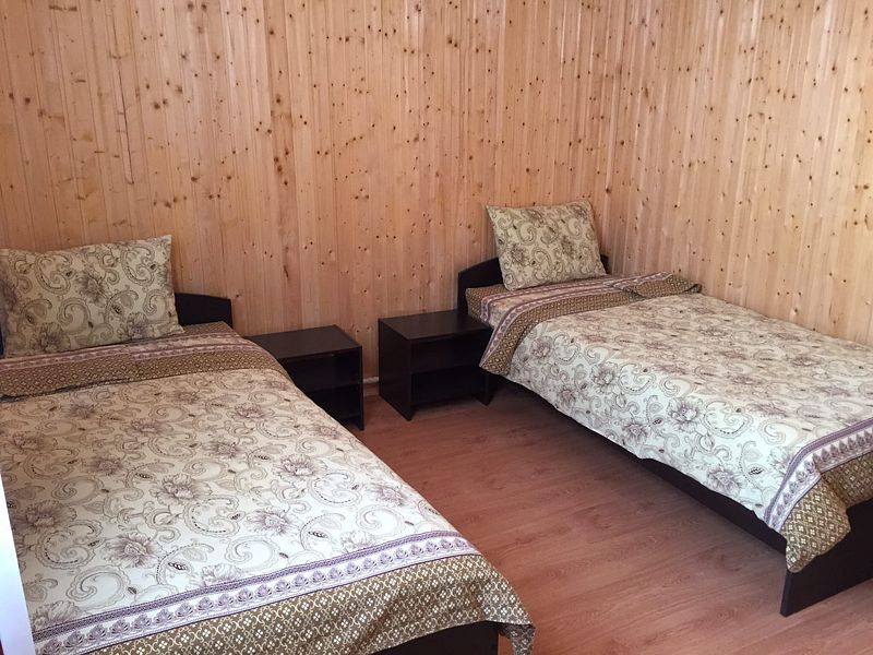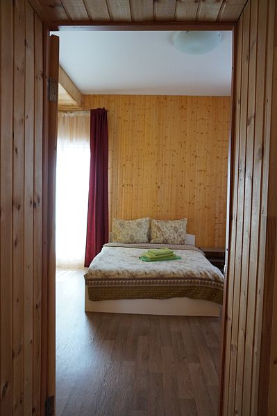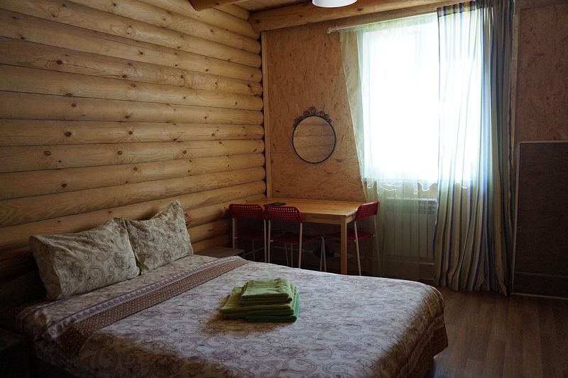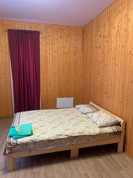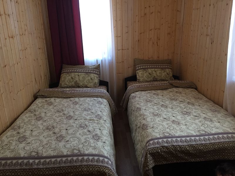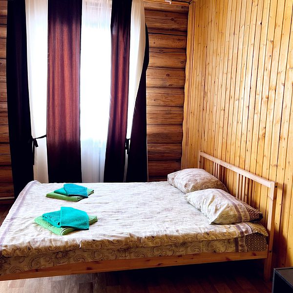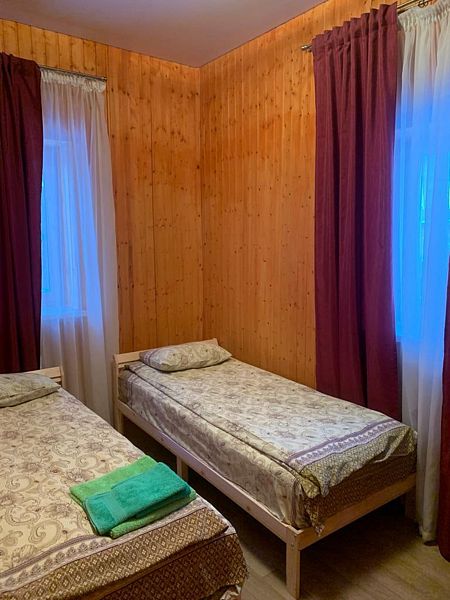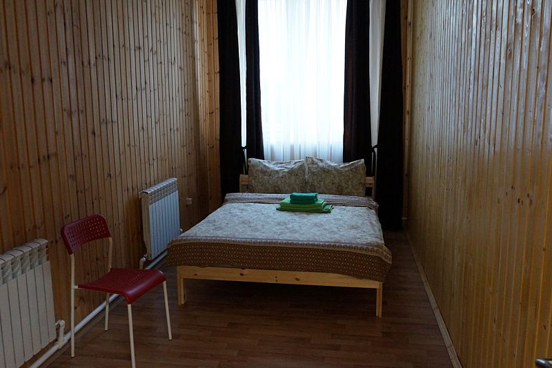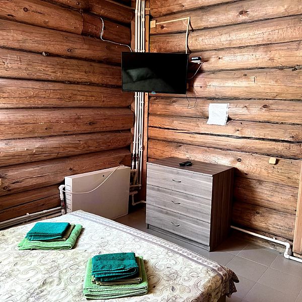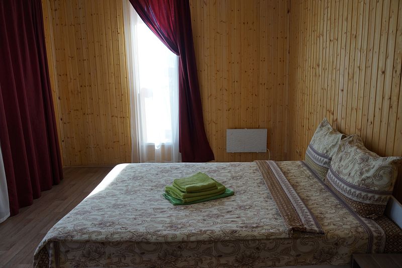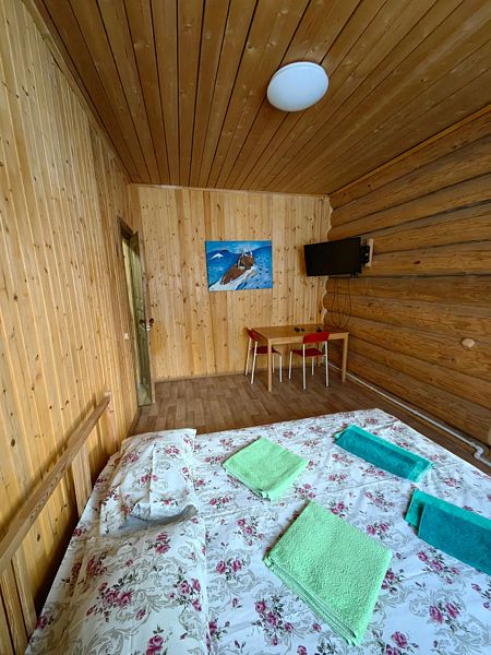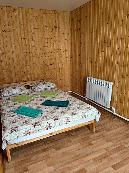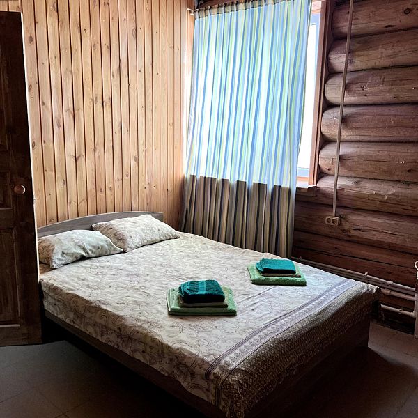 Площадь номера: 15 м2. В номере: двуспальная кровать, стол, стулья, прикроватные тумбочки, вешалка, зеркало, набор полотенец, набор постельного белья, телевизор, посуда, микроволновая печь, электрочайник, холодильник, вода,мангал. Удобства (душевая кабина, туалет, раковина) на этаже.