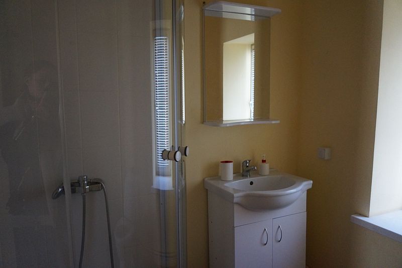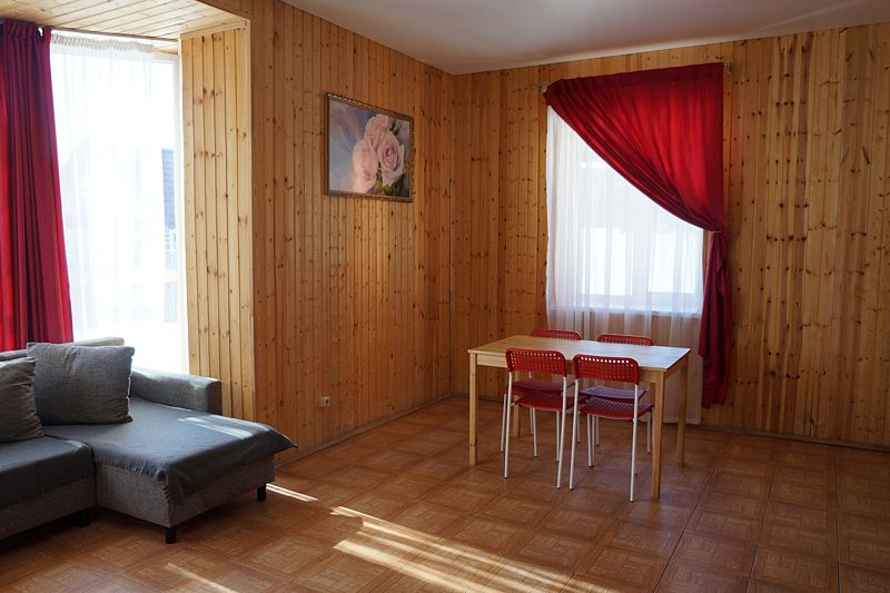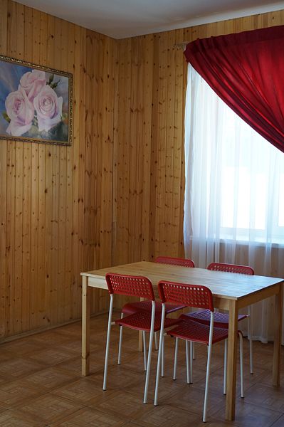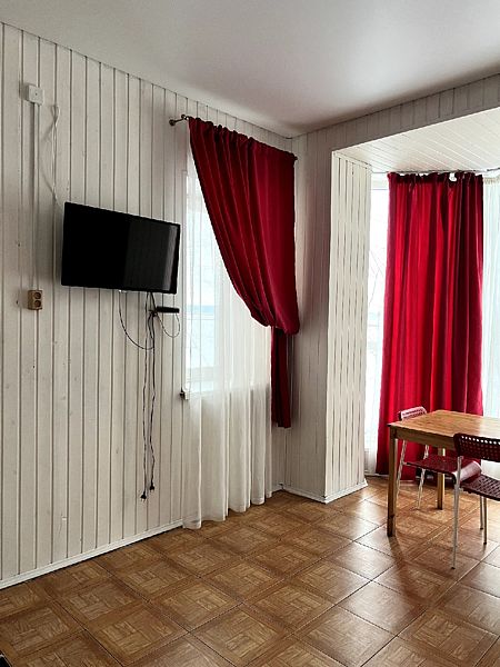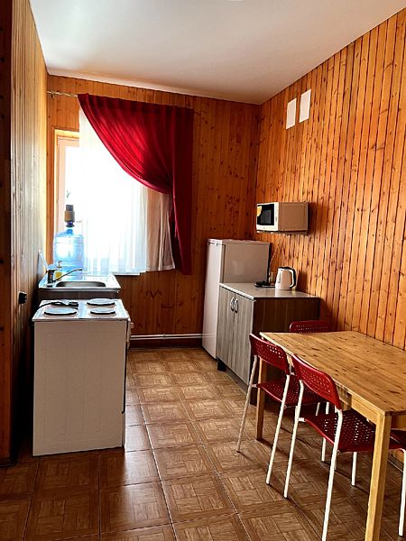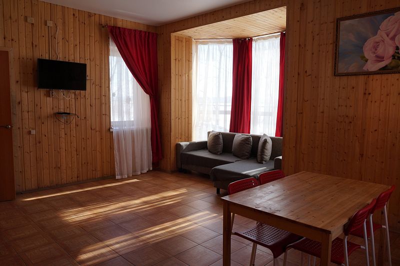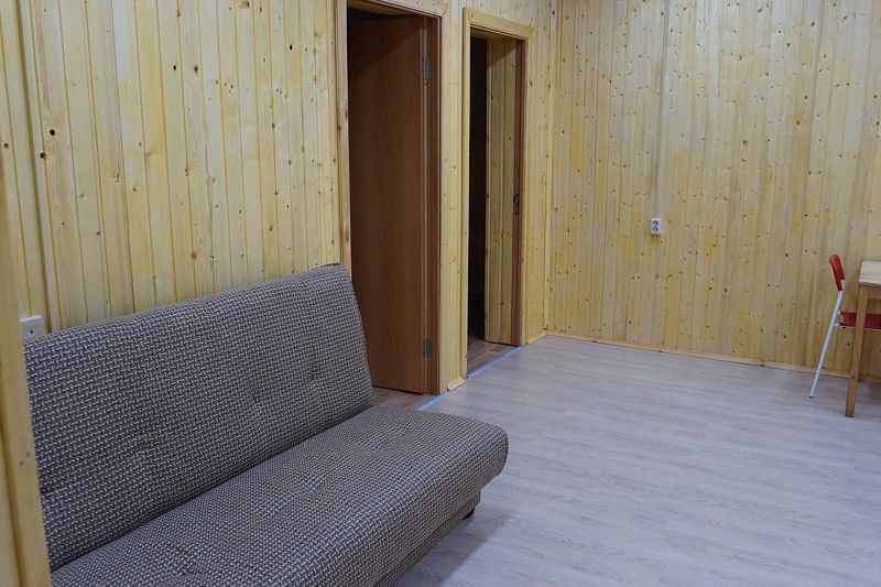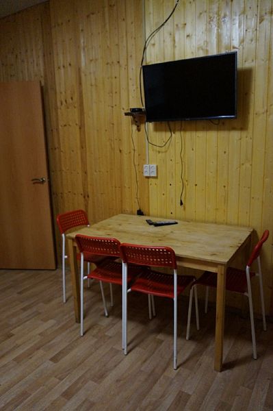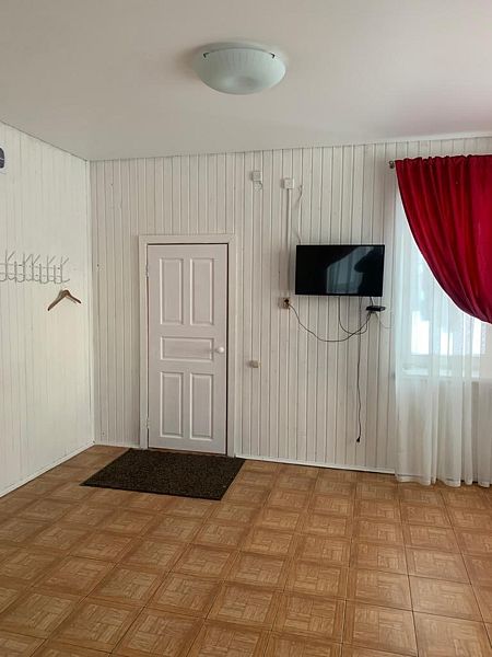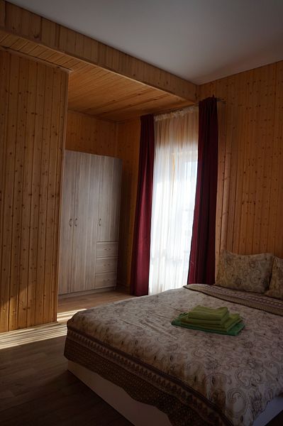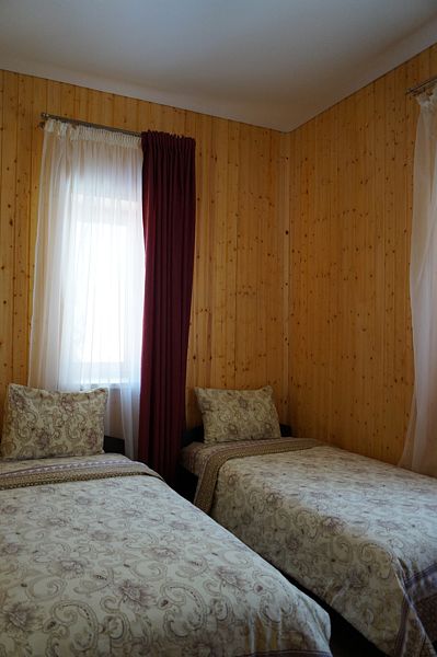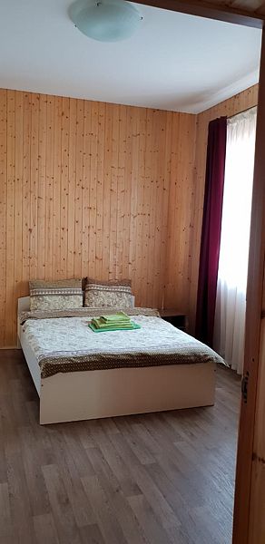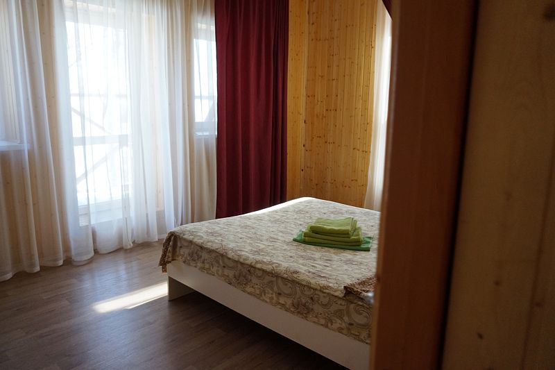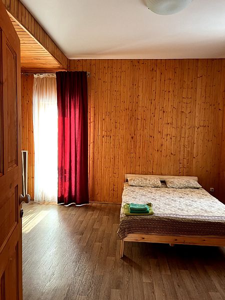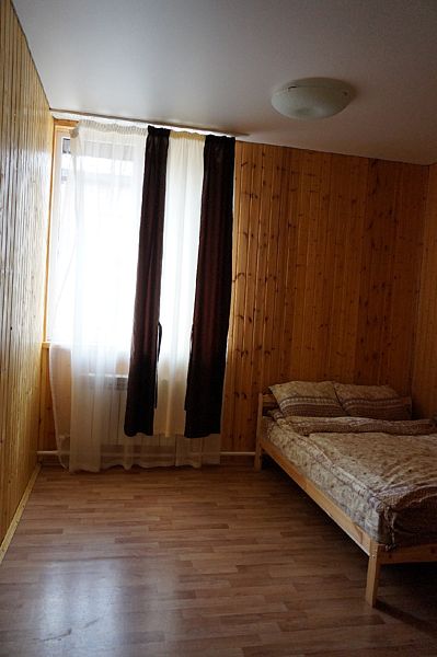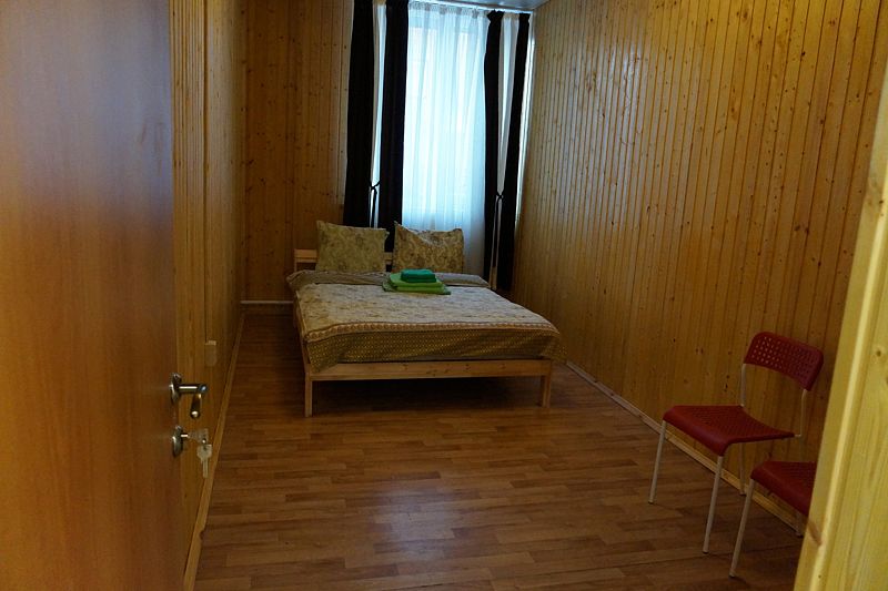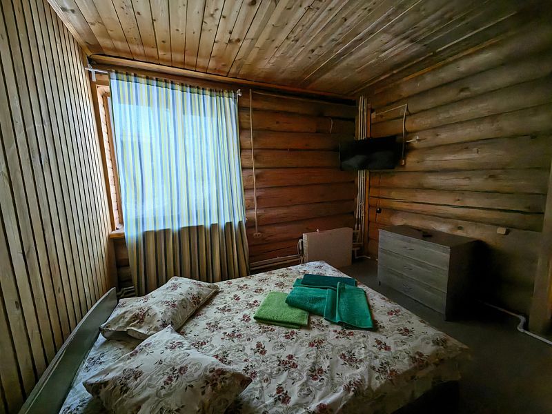Двухместный номер, находится на втором этаже дома. В номере есть все удобства. Душ, туалет, кухонный уголок, где есть микроволновка, чайник, холодильник, питьевая вода, посуда. Так же, двуспальная кровать, шкаф, обеденный стол, телевизор и диван