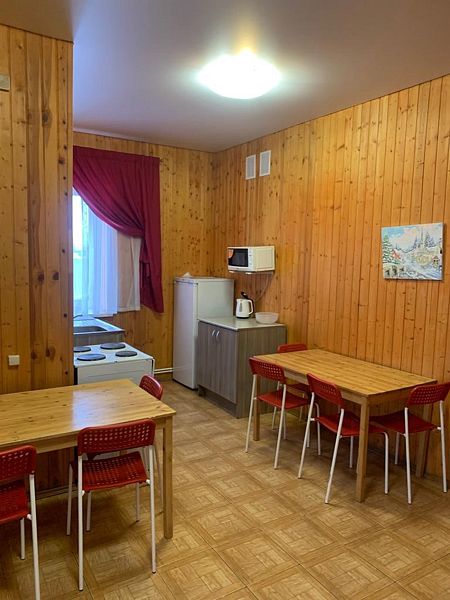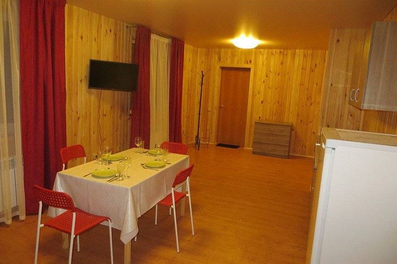 Площадь дома: 108 м2. В шале: две спальни, гостиная, кухня, телевизор, посуда, микроволновая печь, электрочайник, кухонный гарнитур, холодильник, вода, мангал. В ванной: туалет, раковина, душевая кабина, зеркало, набор полотенец.