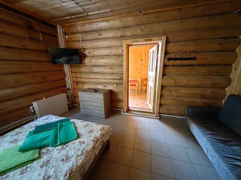 Двухместный номер "люкс", с сауной, части дома, с отдельным входом, расположенный на территории Гостевого комплекса "Займище" на сутки, выходные, праздники, новый год, для отдыха. 25кв.м. Вместимость: 3 чел. (возможно ребенок, либо аренда раскладушки-500р.) В номере: 2 комнаты, двуспальная кровать, кухонный уголок, душевая, туалет. Бытовая техника: телевизор, холодильник, СВЧ, чайник, вода с завода, водонагреватель, мангал у домика. Прилегающая территория: Магазин в 20 минутах пешком Дополнительная информация: - Курение в доме строго запрещено - Заезд с животными обговаривается - В стоимость аренды входит постельное белье и посуда.