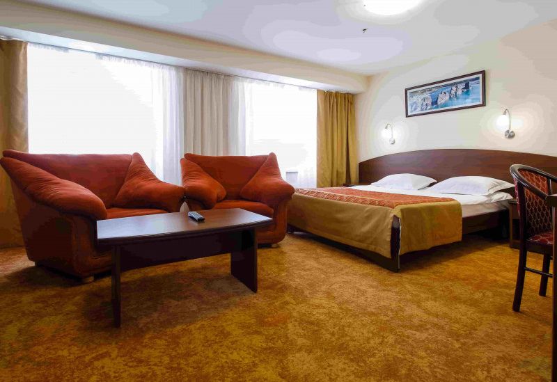 В отеле круглосуточно работает ресторан, предлагающий гостям себе блюда европейской или русской кухни. Приятно провести вечер отдыхающие смогут в караоке-баре, где не только большой выбор песен, но и вкусных коктейлей. Также в отеле есть банный комплекс сауной. Перед зданием организована автостоянка, на территории ловит доступна wi-fi.