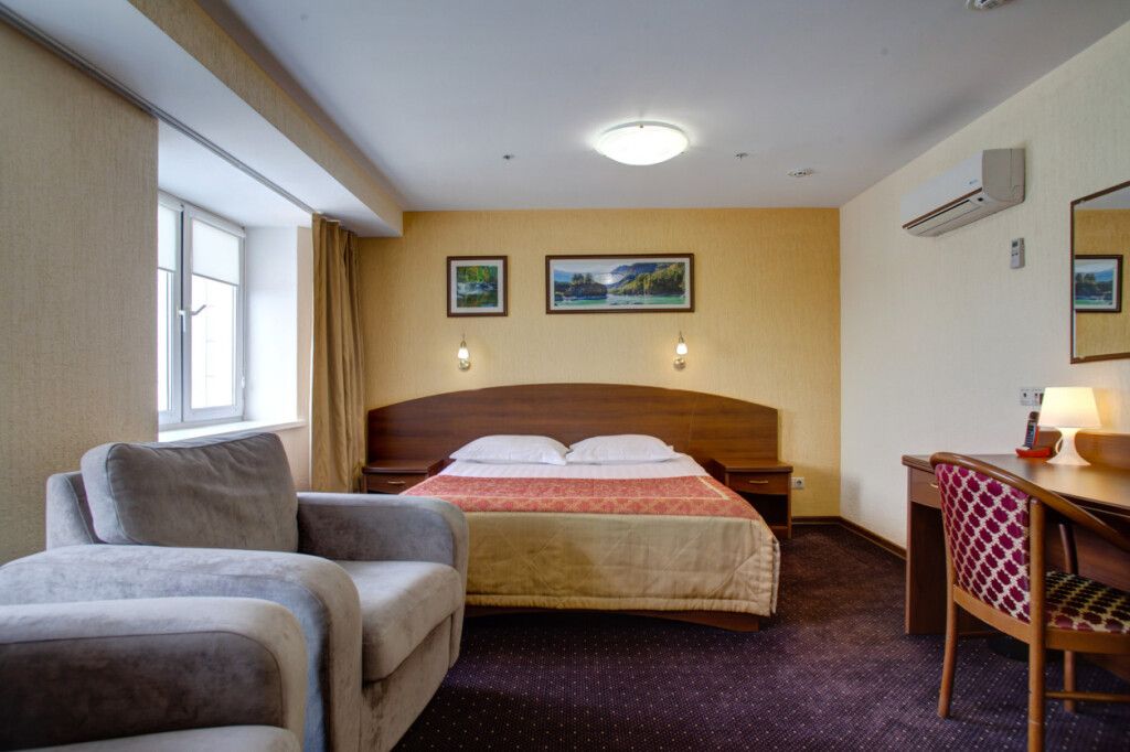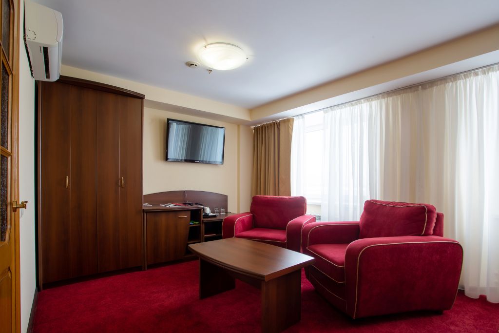 17-ти этажное здание возвышается на пересечении главных городских магистралей — проспекта Ленина и улицы Терешковой. Гостей ожидают 114 номеров категории Стандарт, Студия, Комфорт и Люкс. Одноместные и двухместные номера оснащены бытовой техникой — телевизором-ЖК, феном, кондиционером, в номерах Люкс есть игровая приставка. В каждом имеется санузел с ванной или душевой кабиной, из окон открываются красивые панорамы на город.