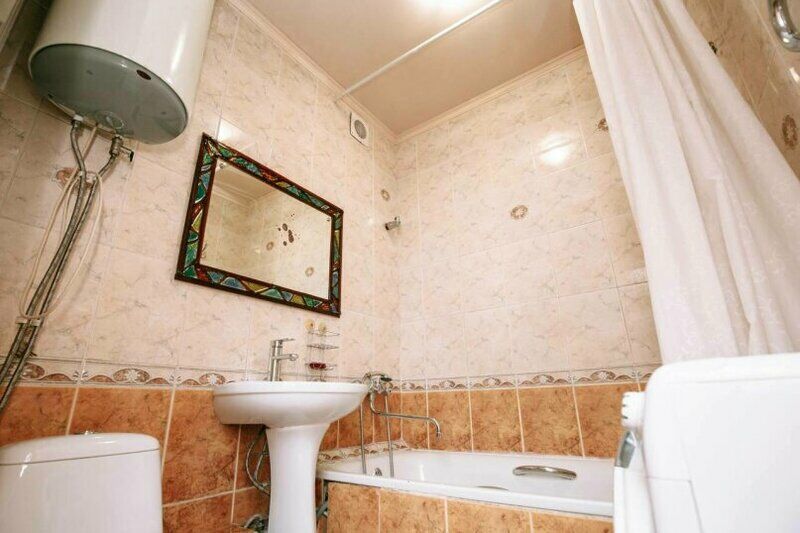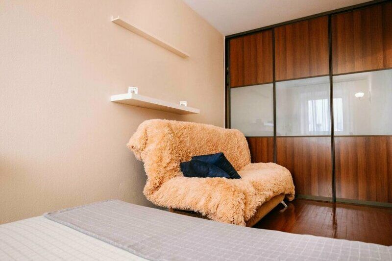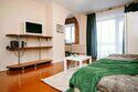 В номере установлена двуспальная кровать и два дивана, что позволяет размещение втроём. Компактная кухня со всей необходимой бытовой техникой. Есть стиральная машина, утюг, Wi-Fi. Парковка поблизости.