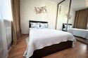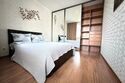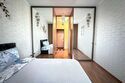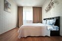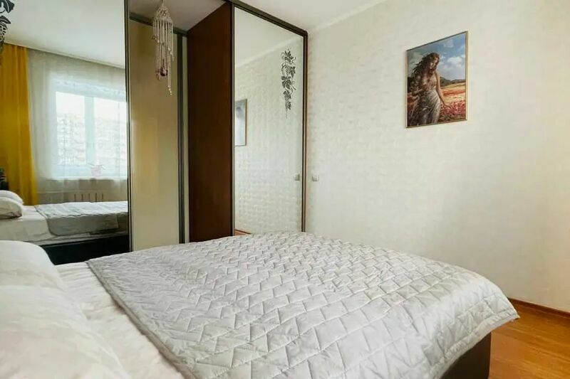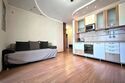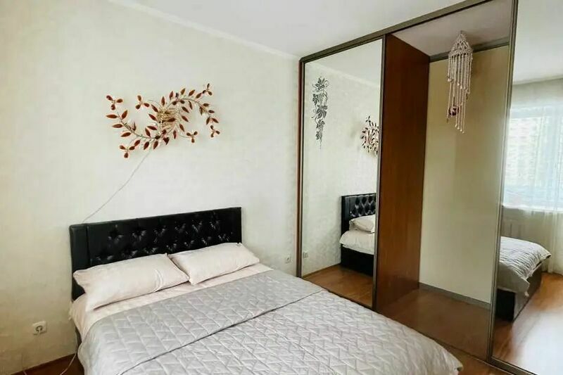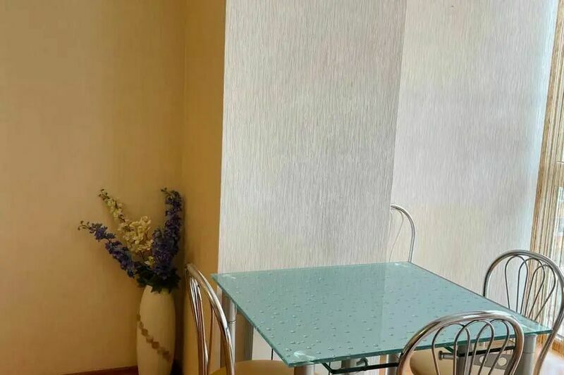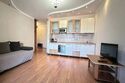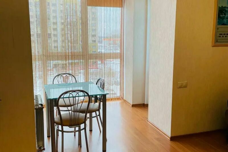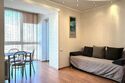 Апартаменты очень светлые, чистые, со свежим ремонтом и лоджией, открывающий вид на город. Есть два раздельных спальных места: диван и двуспальная кровать.