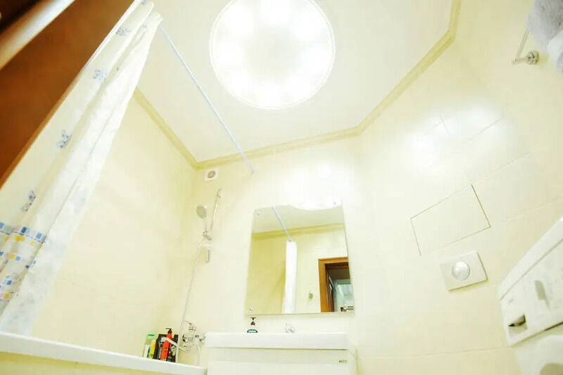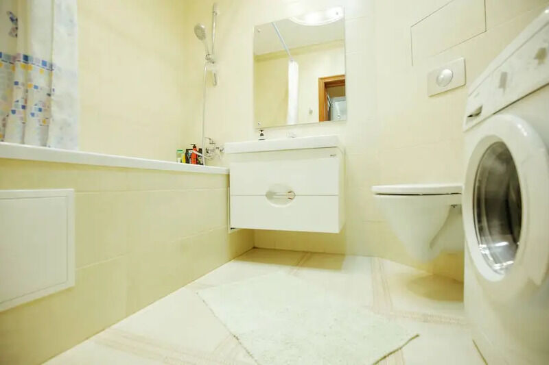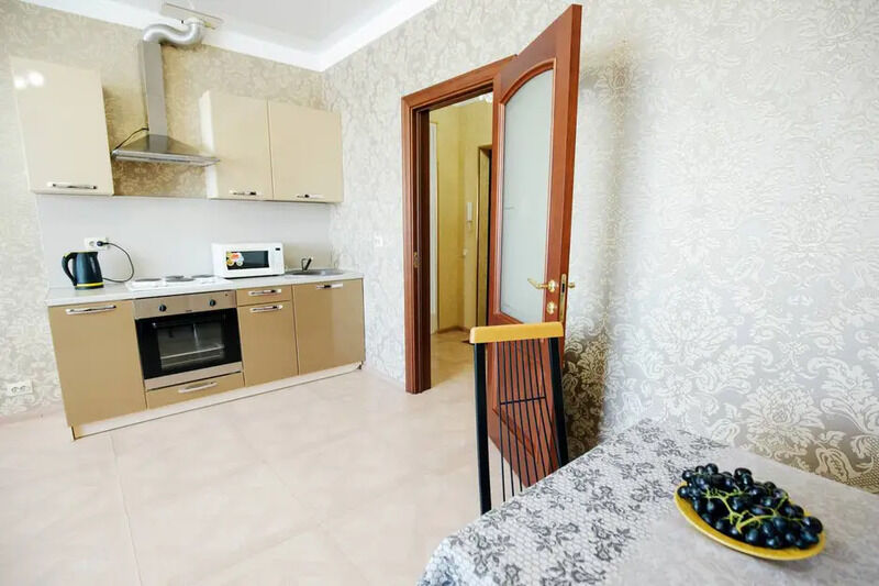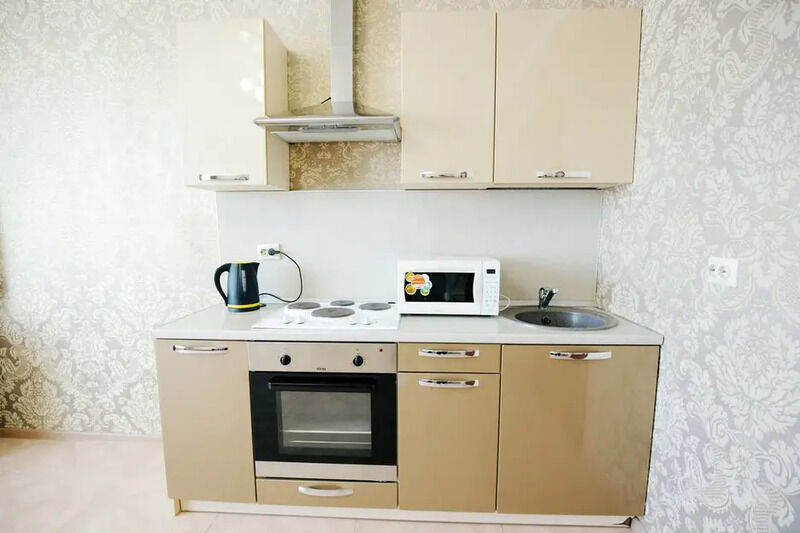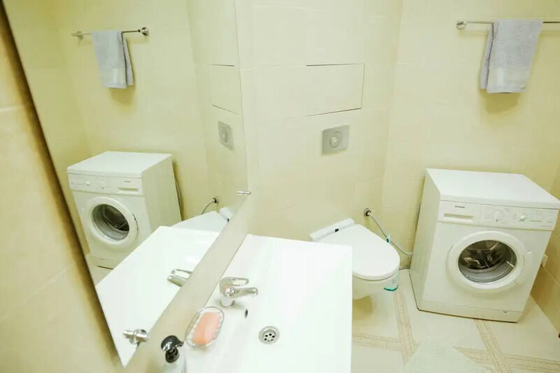 На компактной кухне есть вся необходимая посуда и техника: духовая печь, микроволновая печь. Также есть стиральная машина, утюг и бесплатный Wi-Fi.