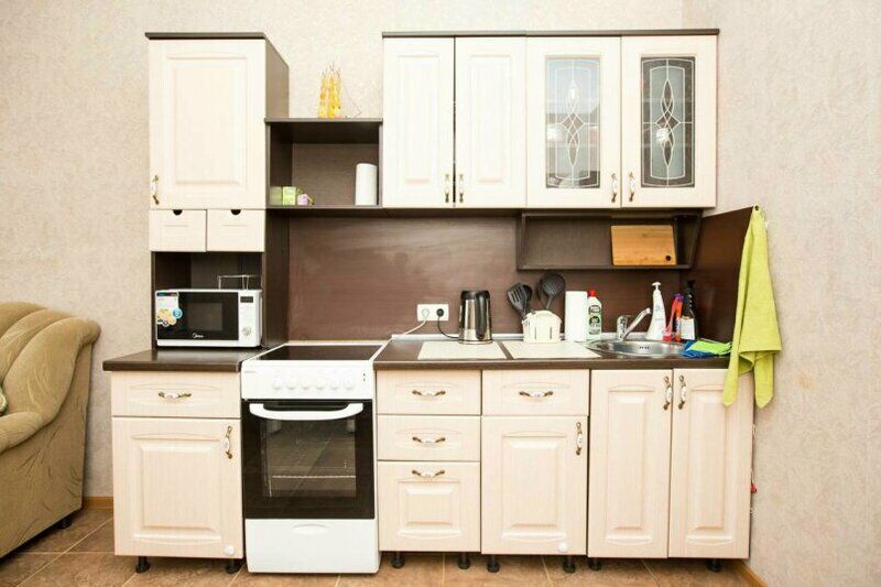 Компактная кухня оборудована необходимой техникой: духовой печью, микроволновой печью. Кроме того, к услугам гостей предоставляется стиральная машина, Wi-Fi и утюг.