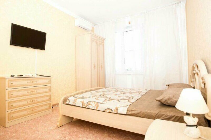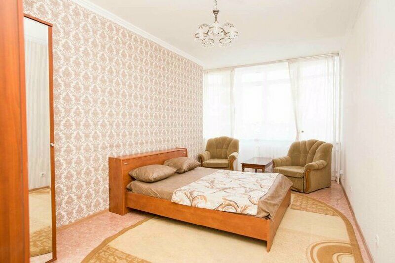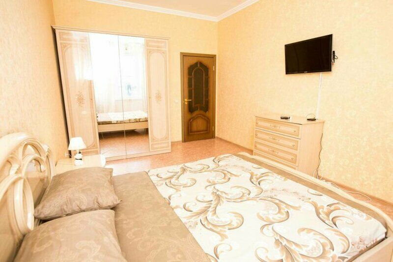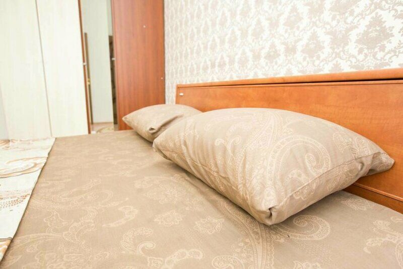 В апартаментах имеется по кровати в каждой из комнат, и диван — в зале.