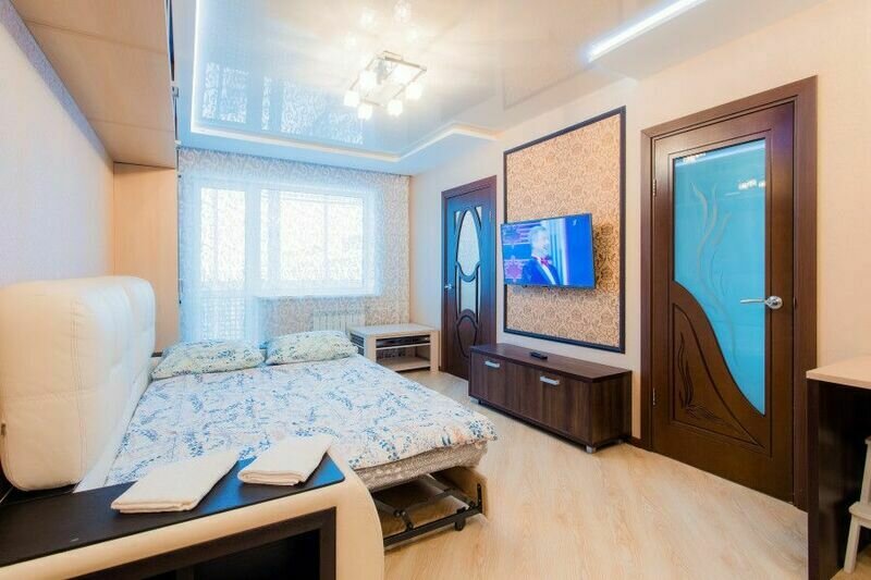 Большие апартаменты с отличным ремонтом. По домашнему уютная гостиная, где можно отдохнуть, посмотреть фильм. Светлая с большим окном спальня. Просторный балкон, на котором можно выпить чая, наблюдая за природой.