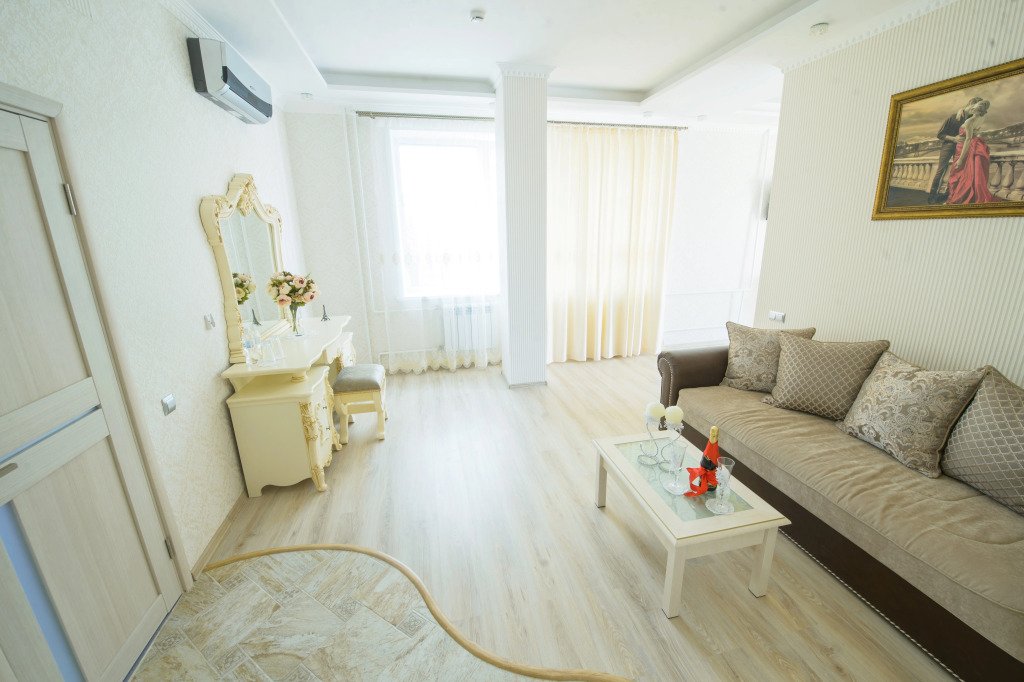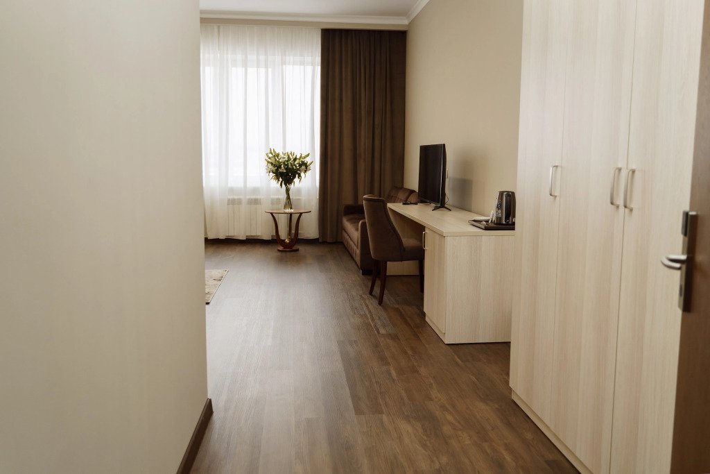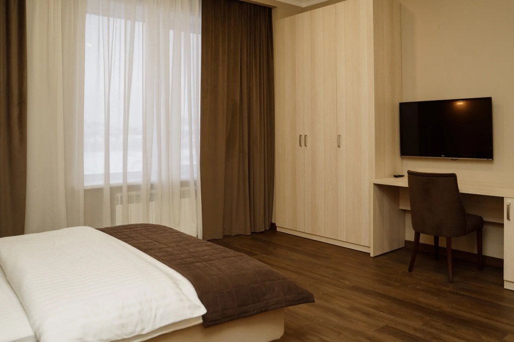 В номере вы найдёте телевизор. Оснащение зависит от выбранной категории номера.