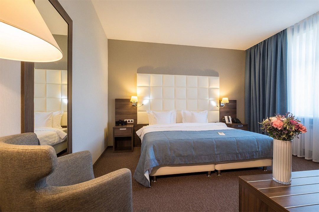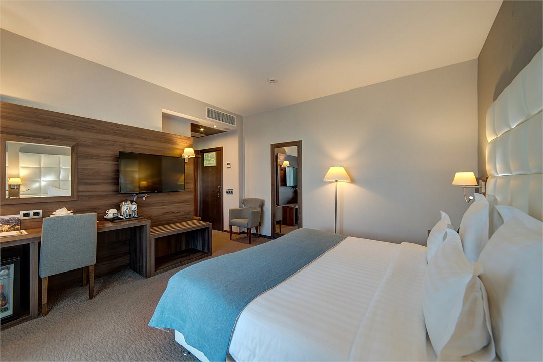 Однокомнатный просторный и комфортабельный номер, площадью 25 кв. м с видом на город. На выбор предоставляется номер с одной кроватью Double или с двумя кроватями Twin.Услуги и удобства