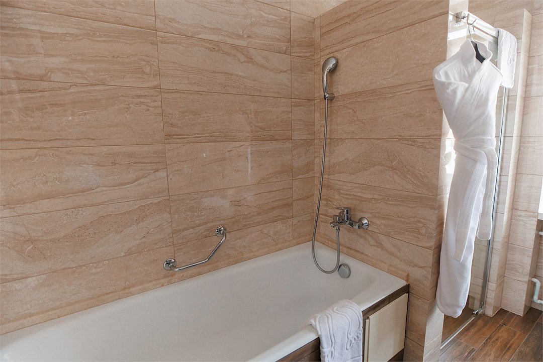 Просторный однокомнатный номер повышенной комфортности площадью 30 кв. м, с видом на набережную.Услуги и удобства