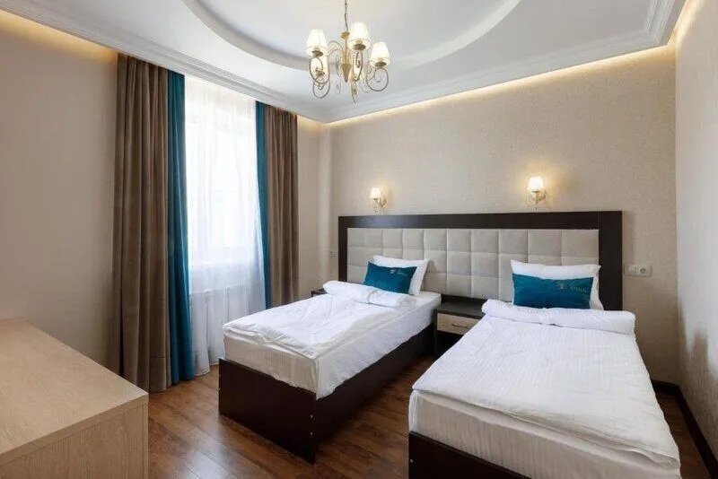 На выбор отдыхающих представлено 25 номеров в современном гостиничном комплексе с евро-ремонтом. Из удобств в каждой комнате есть кондиционер, плоский телевизор, гардероб и письменный стол. Собственная ванная комната оснащена открытой душевой кабиной, комплектом гигиенических принадлежностей и полотенец.
