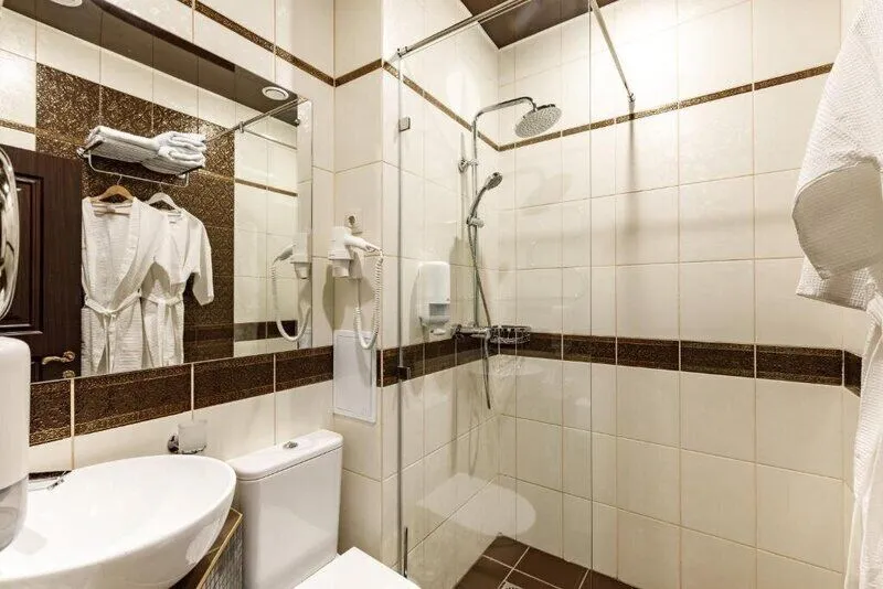 кровать «King size», ТВ, холодильник, кондиционер, сейф, фен, туалетные принадлежности, халаты, тапочки, с/у с душем