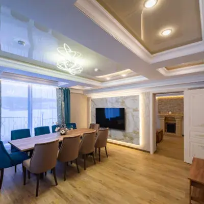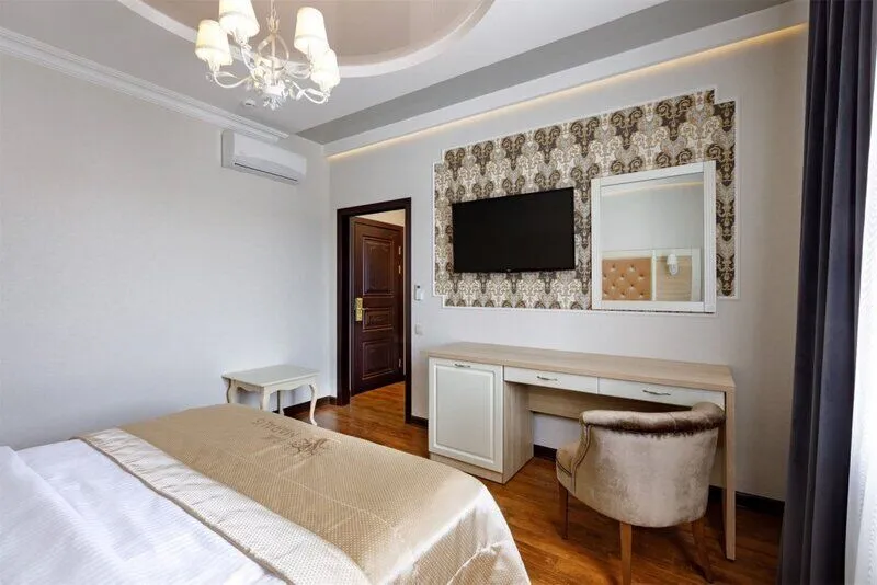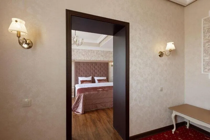 Номер класса люкс с большой двуспальной кроватью и одной спальней. Состоит из трех зон: гостиная, спальня, кабинет. Идеально подходит для молодоженов.Услуги и удобства