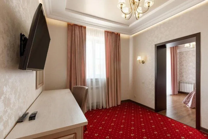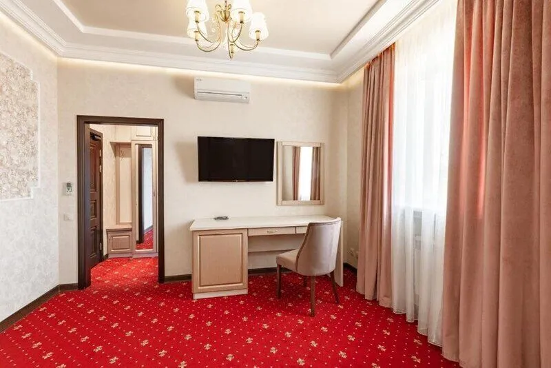 Wi-Fi, интернет, телефон, кондиционер, фен, система безопасности, электронные замки, ванна или душевая кабина, биде, халаты, банные полотенца, тапочки, гигиенические средства, косметические средства, кровать «King size», тумбы, шкаф для одежды, письменный стол, багажная тумба, зеркало, звуконепроницаемые стены и окна, мини-бар, письменные принадлежности, свежая пресса, чайный набор, набор посуды, обслуживание номеров, сейф, чайник, унитаз, раковина, мягкая мебель, гостиная зона, ковровое покрытие, отопление, душ, вид во двор, паркет, стаканы, столовые приборы, кофейный столик, туалетный столик, туалетные средства, цифровое тв, диван-кровать, внутренний телефон, телевизор с плоским экраном, мини-холодильник, шкаф-купе, гостиничная парфюмерия, номер для некурящих, без питомцевВ гостиничном номере