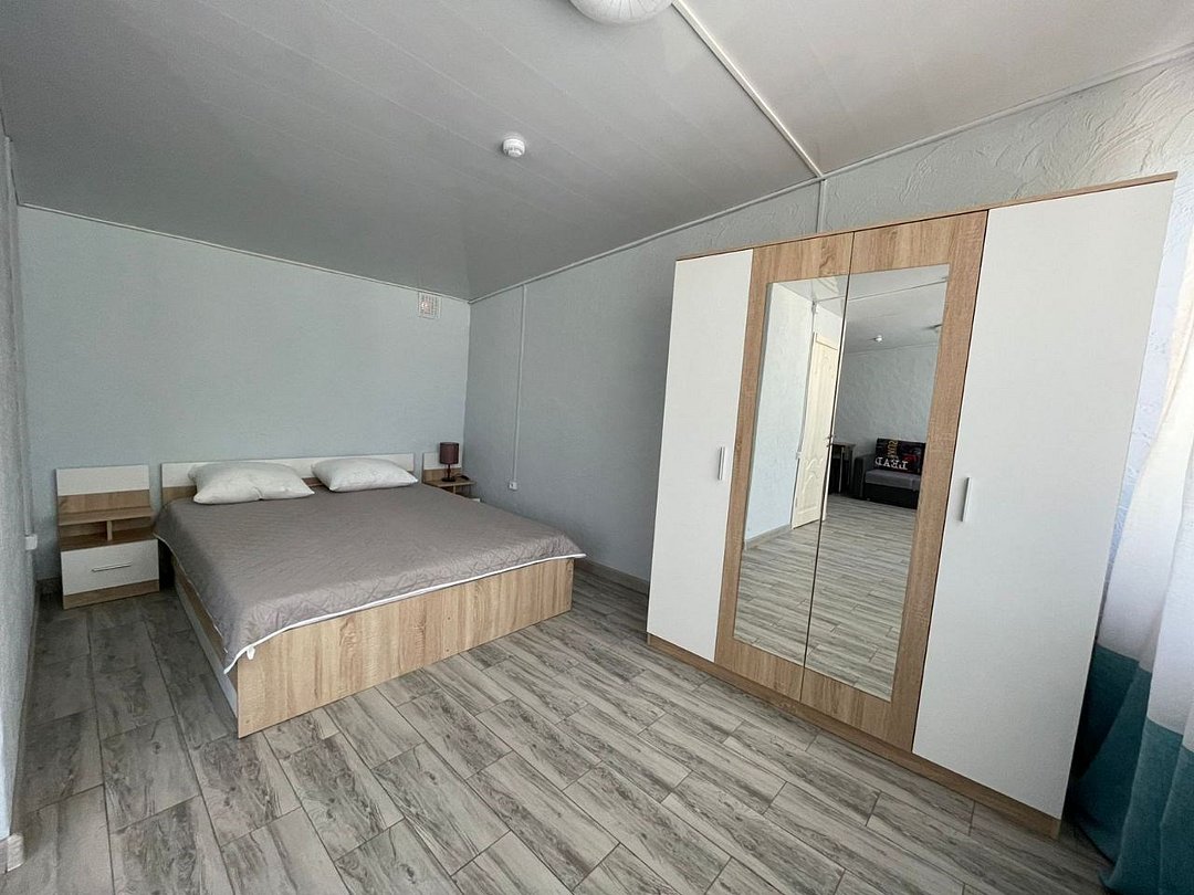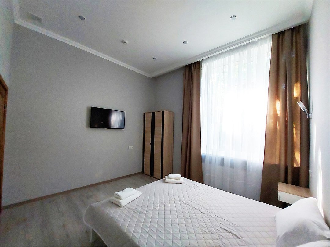 Двухкомнатный номер с отдельным входом. В номере две спальни, в одной - двуспальная кровать, в другой – две односпальные. В номере также ванная комната с душевой кабинкой, фен, банные полотенца, набор минипарфюмерии, телевизор. Кондиционер в каждой комнате. По запросу может быть установлена детская кроватка для малыша. На территории отеля и в номерах предоставляется бесплатный доступ к WI-Fi. На крыльце садовая мебель для отдыха, где Вы можете собраться всей семьёй на свежем воздухе.Услуги и удобства