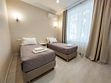Двухкомнатный семейный номер с двумя спальнями и ванной комнатой. В одной спальне большая кровать с ортопедическим матрасом, в другой - две односпальные кровати, которые могут быть собраны в одну большую двухспальную. Большие окна наполняют каждое помещение светом и создают ощущение простора и легкости. В номере установлена удобная мебель в светлых тонах, ванная комната с душевой кабинкой, набор полотенец, минипарфюмерии, фен, кондиционер, телевизор, электрический чайник. По запросу могут быть установлены детская кроватка для малыша. На территории отеля и в номерах предоставляется бесплатный доступ к WI-Fi.Услуги и удобства