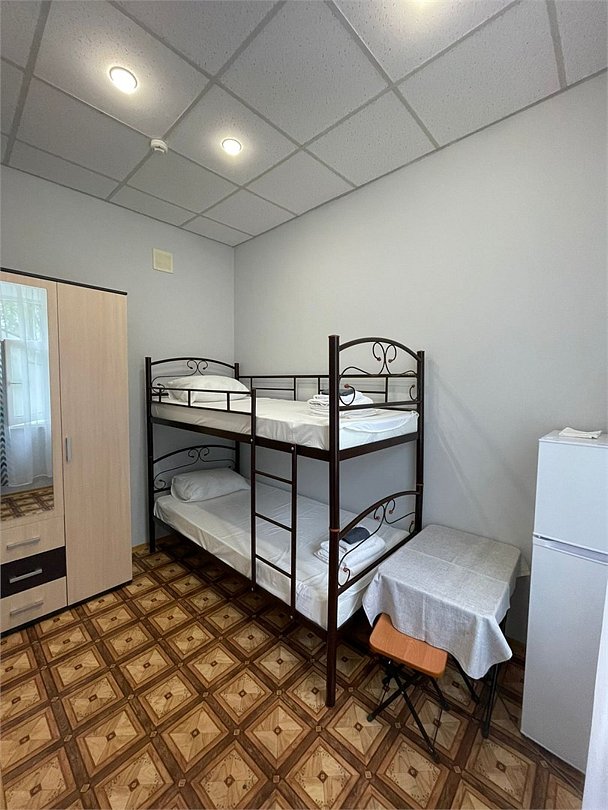 телевизор, Wi-Fi, холодильник, кондиционер, фен, утюг, ванна или душевая кабина, банные полотенца, гигиенические средства, двуспальная кровать, шкаф для одежды, вешалки, зеркало, чайный набор, двухъярусные кровати, вид во двор, стаканы, стол, туалетные средства, туалет, москитная сетка, чайная станция, без питомцевВ номере