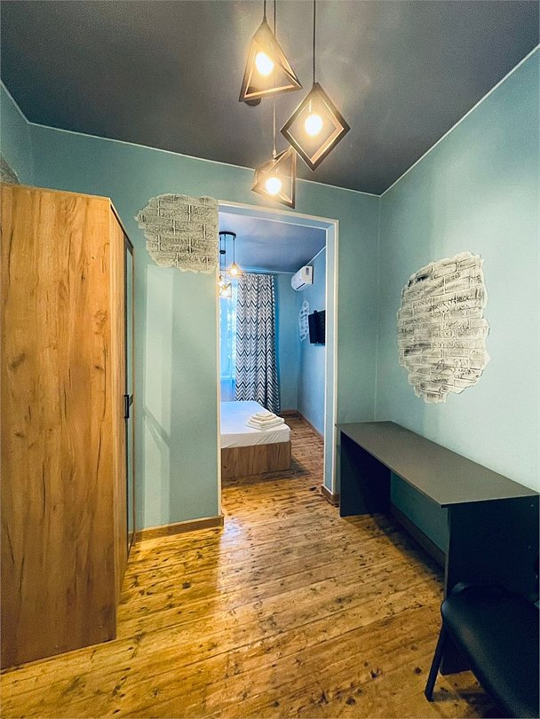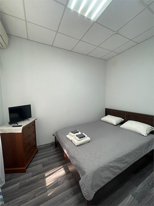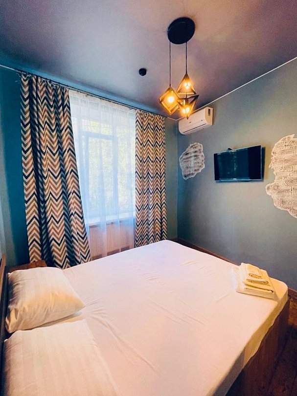 Уютный светлый однокомнатный номер для двоих. В номере одна двуспальная кровать. 3 общие ванные комнаты и 3 санузла. В номере есть кондиционер, телевизор.Услуги и удобства