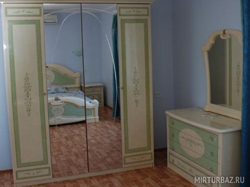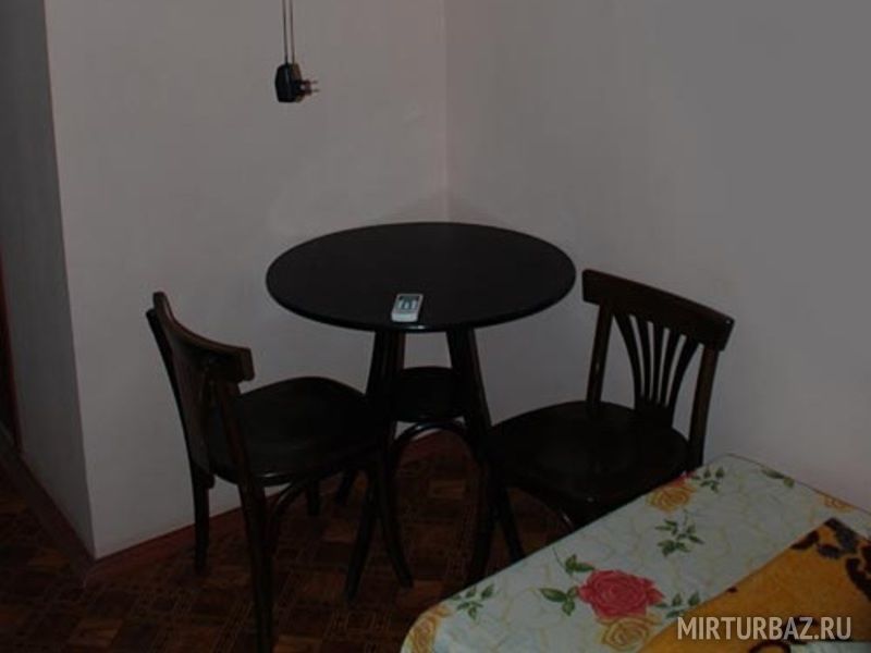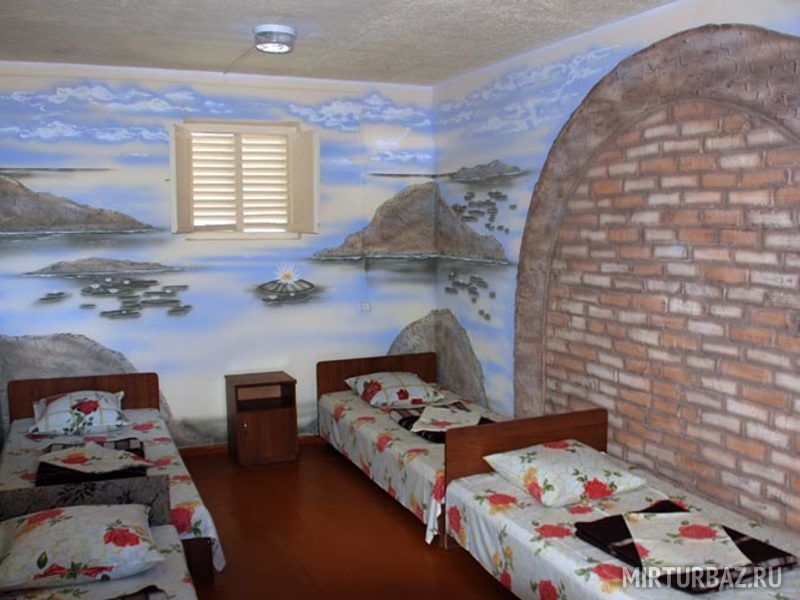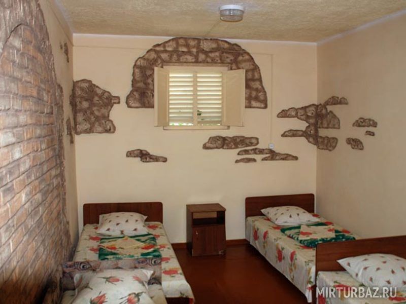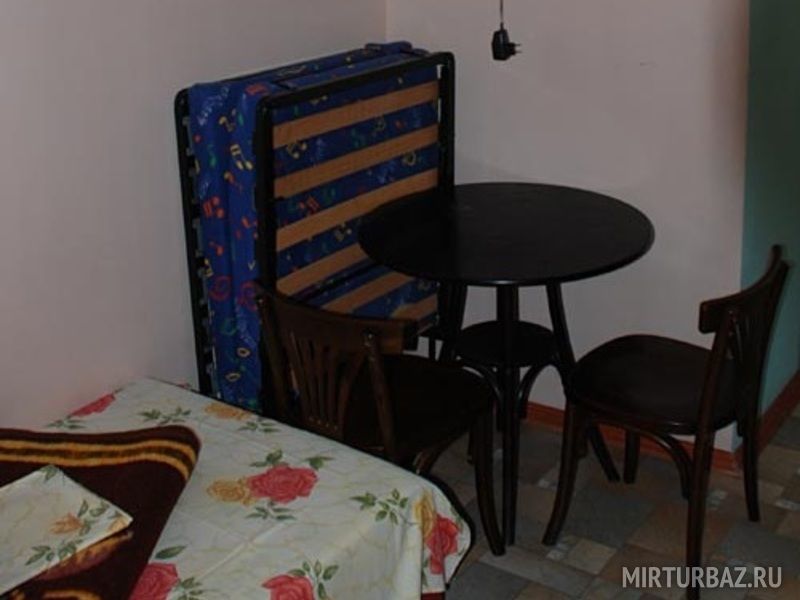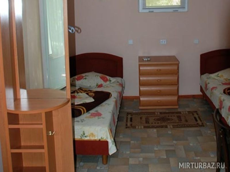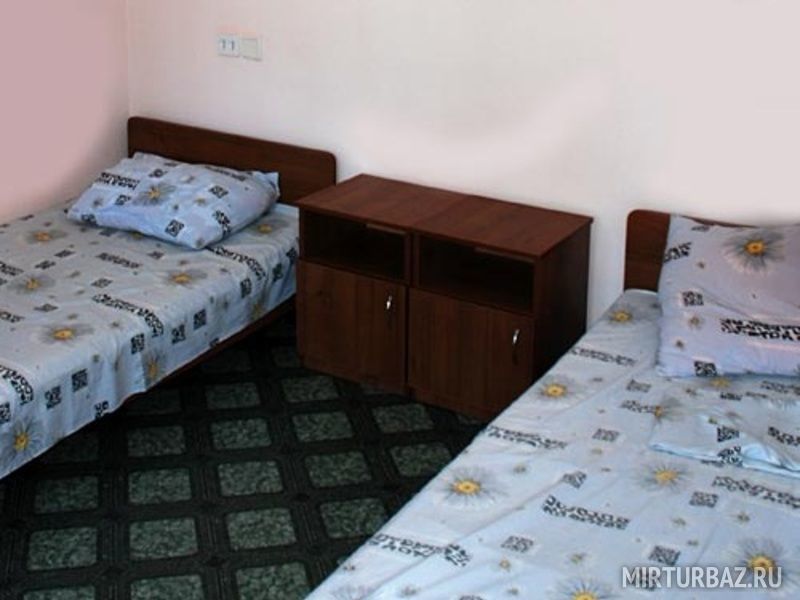 В каждом номере находятся полуторные кровати, стол, стулья, холодильник. Удобства располагаются на территории базы. У каждой комнаты есть балкон с которого открывается прекрасный вид на Черное море.