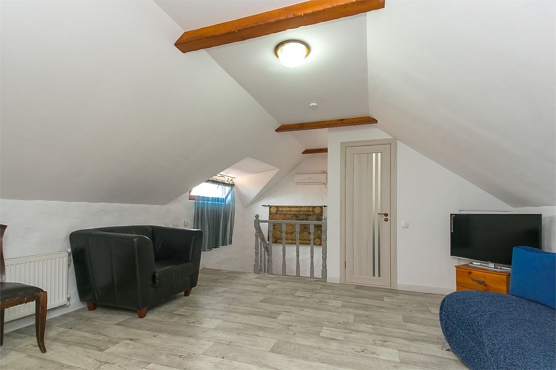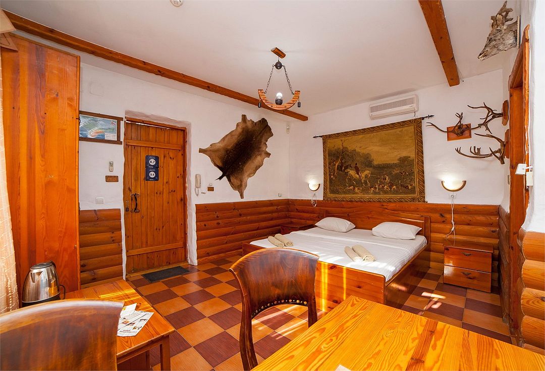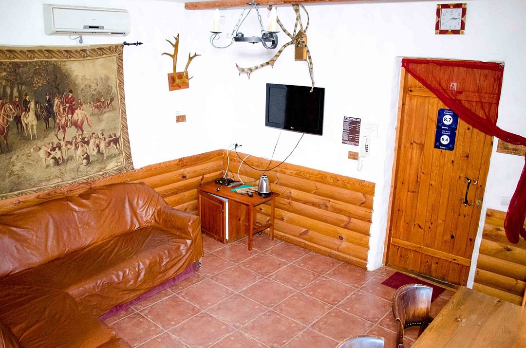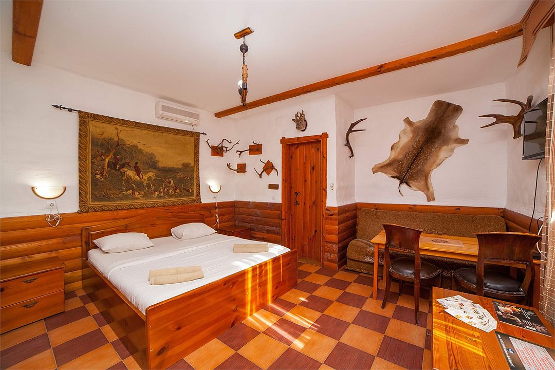 Двухэтажный коттедж для большой семьи, деревянная отделка и мебель, стилизованная атмосфера не оставит Вас равнодушными и подарит приятные ощущения. Спутниковое ТВ, мини-бар с напитками, 2 кондиционера, 2 телевизора, караоке, собственная зона отдыха и русская баня на территории обеспечит отличный отдых уставшему путнику.