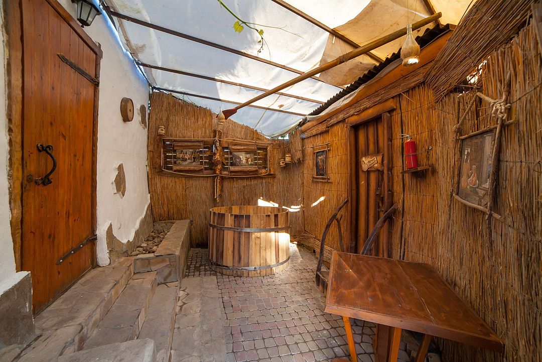 Русская парная полностью выполнена из натуральной древесины. Вмещает до 6 человек.