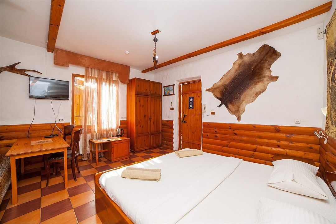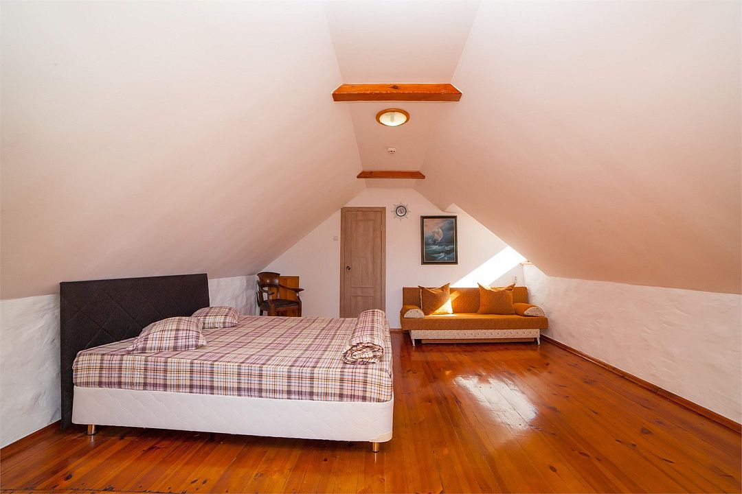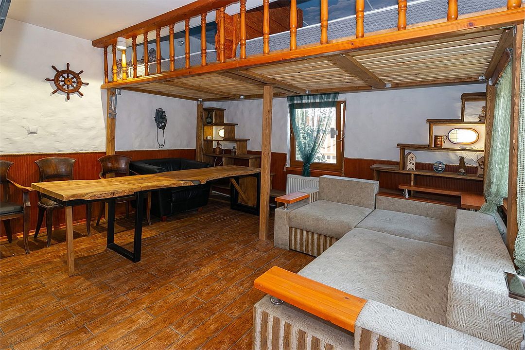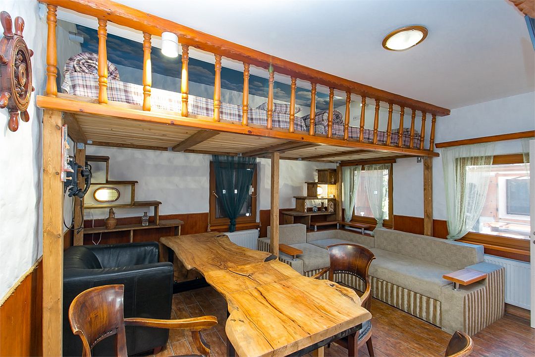 Номер эконом класса , создан для большой компании или семьи , стилизованный в морской тематике, под кубрик (жилое помещение для команды корабля ) оставит Вам -только приятные воспоминания о проведенном отдыхе ,также понравится семьям с детьми, располагает кондиционером , спутниковым телевидением и санузлом с феном. Количество номеров 2
