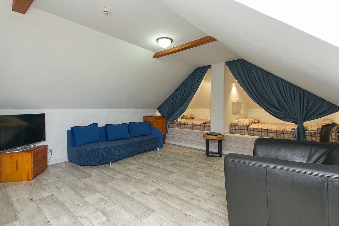 Пять односпальных кроватей, одна двуспальная кровать, одна диван-кроватьУслуги и удобства