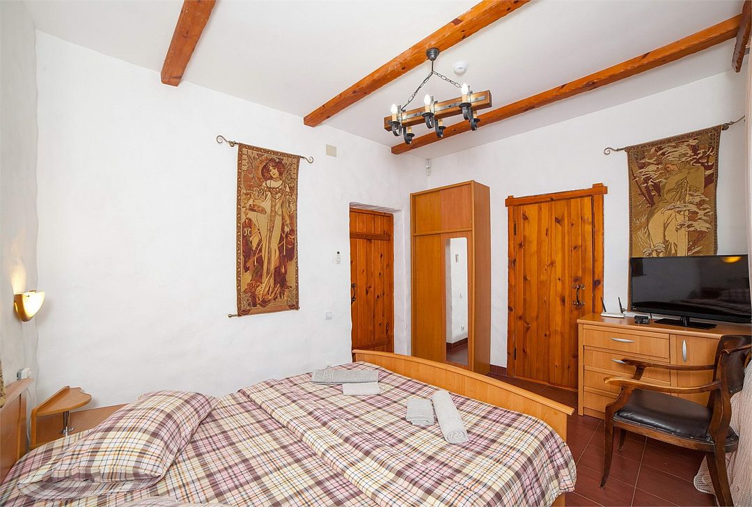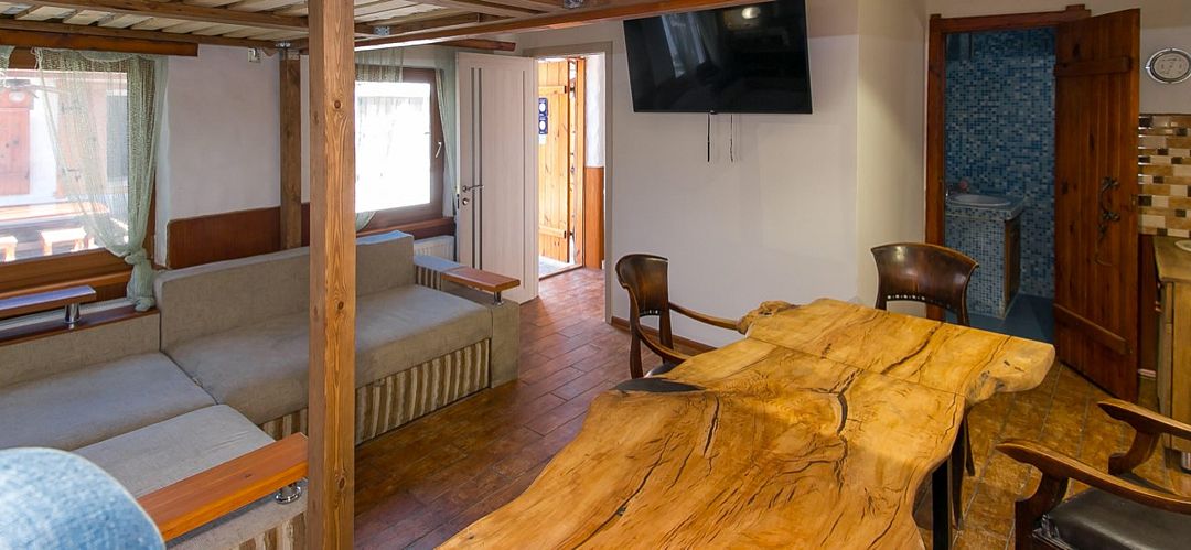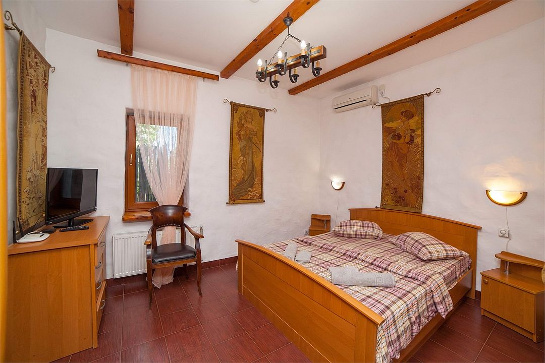 Просторный уютный номер, идеально подходит для семьи с детьми и компании . Авторский дизайн, спутниковое ТВ, мини-бар, набор для приготовления горячих напитков, собственная зона отдыха во дворе. Лучшее, что нужно для Вашего отдыха! Этот номер располагает кондиционером, гостиным уголком, спутниковым телевидением и ванной комнатой с феном.