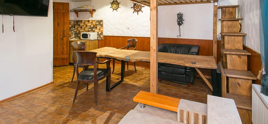 Коттедж(ремонт май 2021) , создан для большой компании и релакса как внутри дома, так и на свежем воздухе. Дом, стилизованный в морской тематике, оставит Вам -только приятные воспоминания о проведенном отдыхе. Полный набор бытовой техники, мини бар, мини-кухня с микроволновой печью и изюминка номера — ХАМАМ за отдельную плату ,также понравится семьям с детьми!