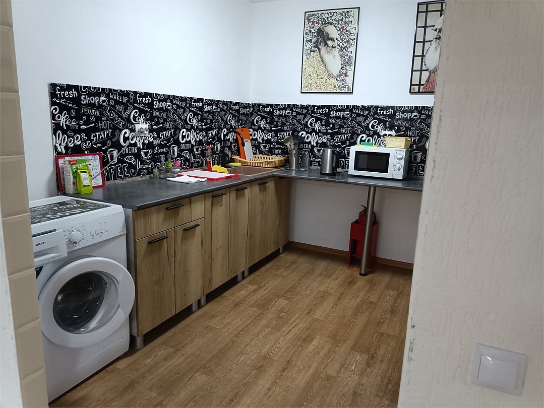 Трехместный номер с 1 большой кроватью ,диваном и кондиционером. В номере имеется санузел и душевая. Предоставляется: бесплатный wi-fi, проживание с животными возможно по договоренности. Разрешается размещение детей любого возраста. Отдельно есть обеденная зона с большим удобным диваном и smart tv . Кухня общего пользования полностью укомплектованная посудой и техникой. Есть стиральная машинка для гостей.Услуги и удобства