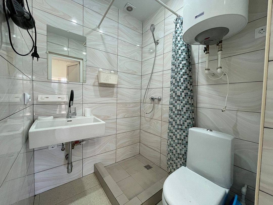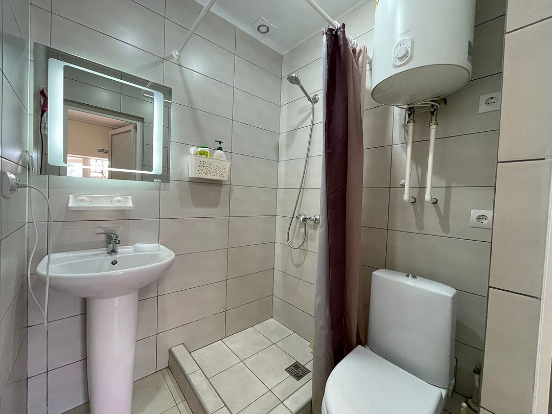 • Ванная комната: душ, туалет, раковина, полотенца, косметические принадлежности.