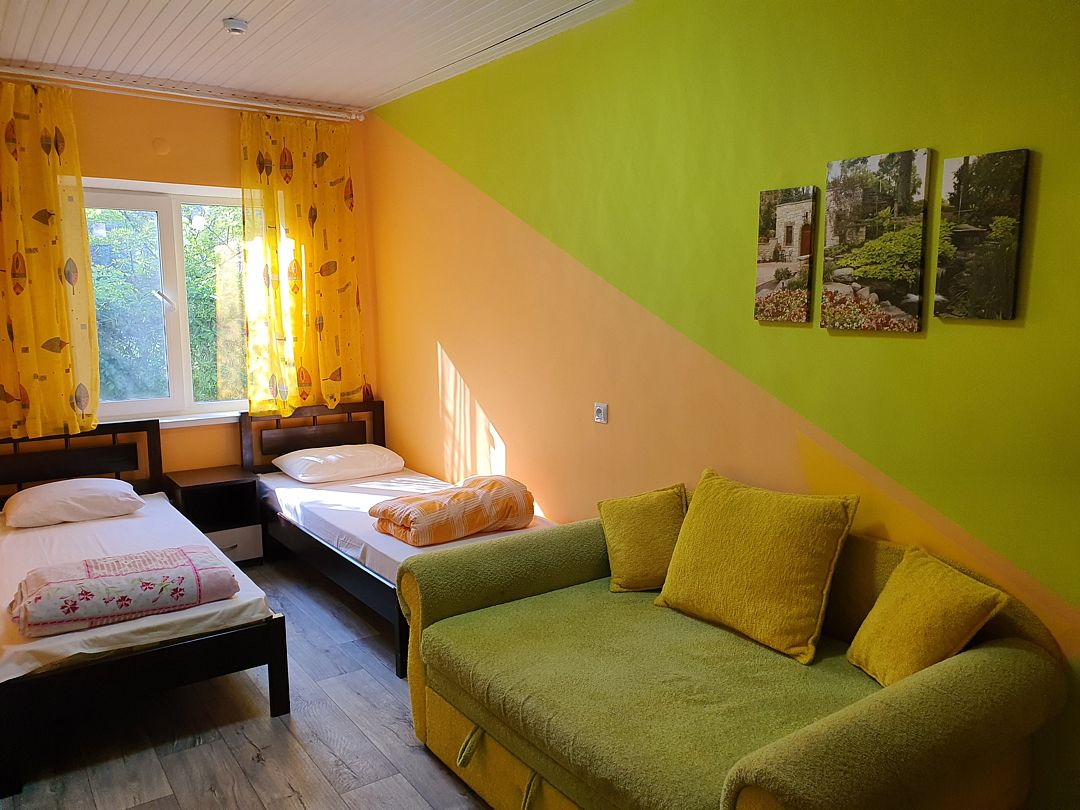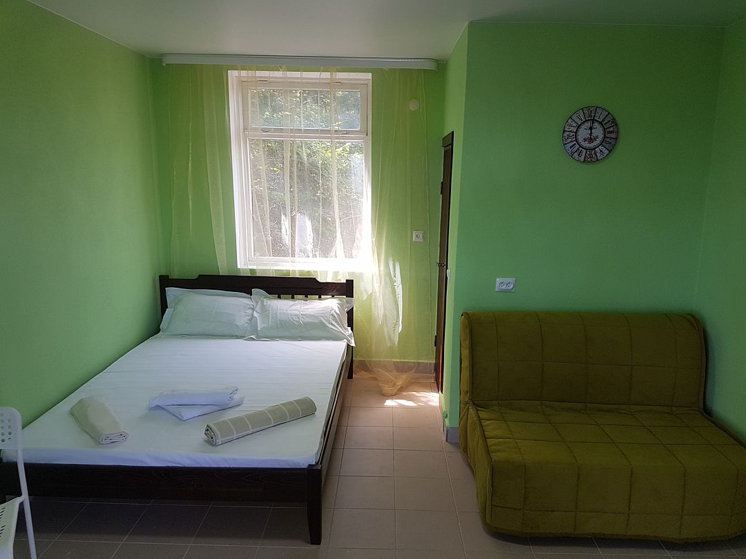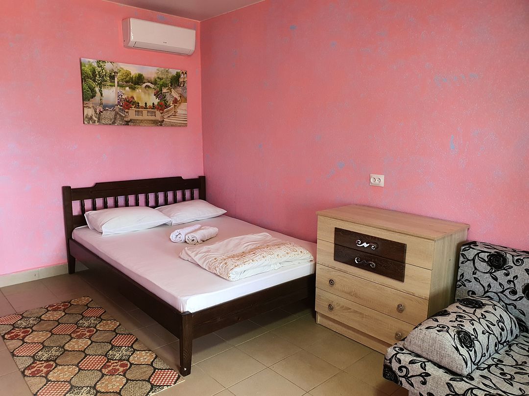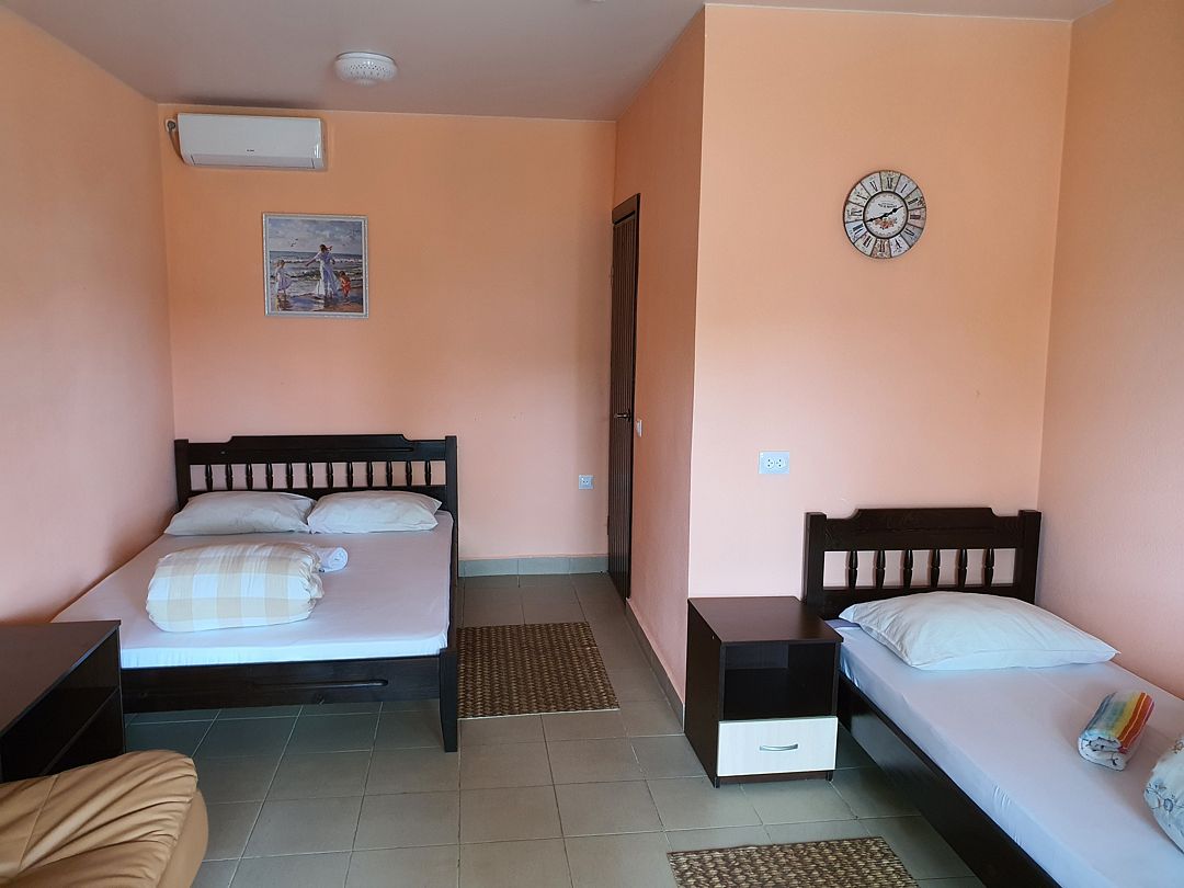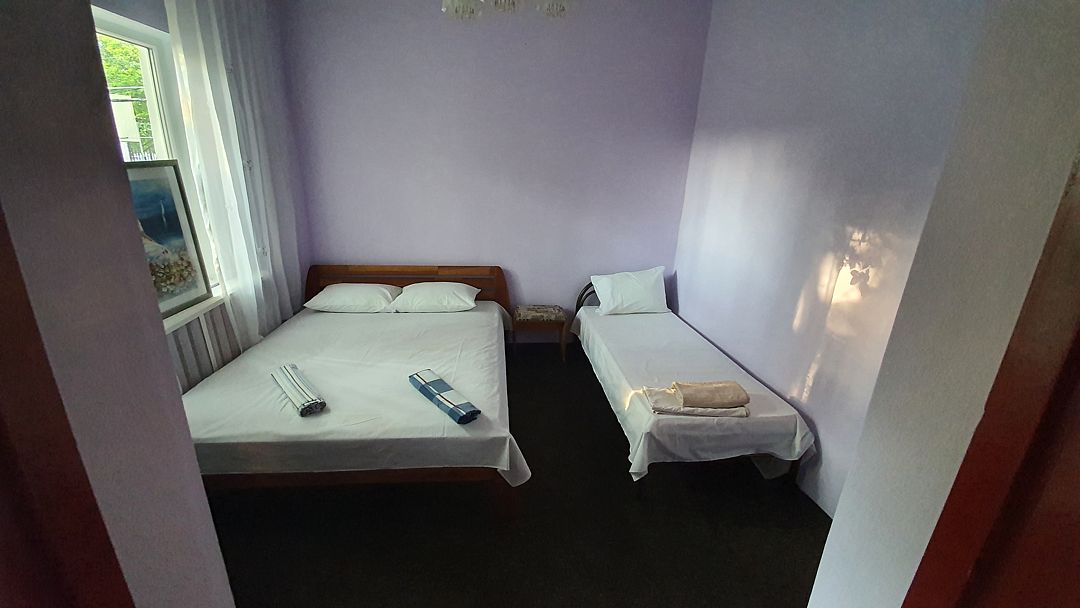 Семейный отдыхДостоинстваНомер довольно чистый. На кухне можно готовить самостоятельно, хотя хозяйка тоже предлагала гостям обеды. В паре метров пляж, небольшой, но места всем хватало.
