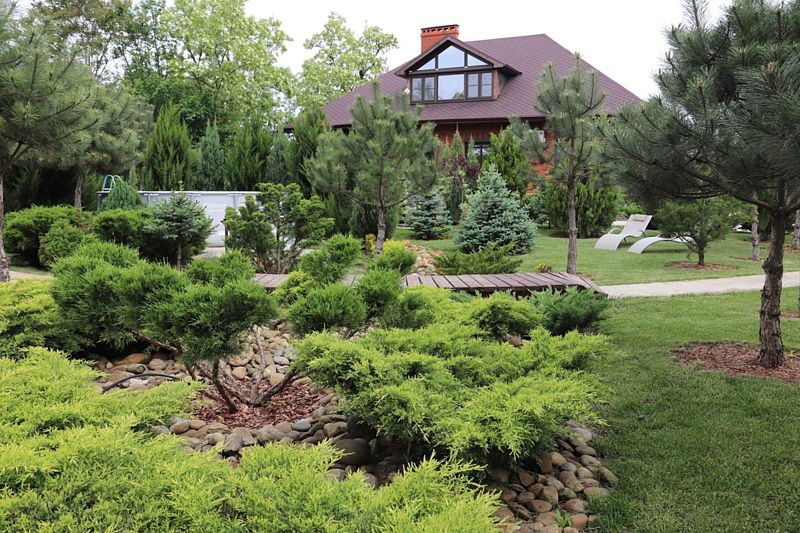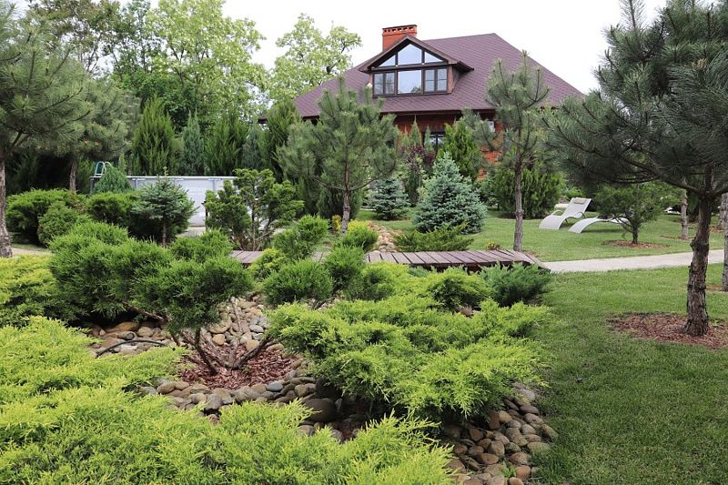 Читать полностьюВысокие сосны, стройные ели и статные тисы создают мягкую тень, под которой распростерлись кустарники можжевельника, туи и самшиты. Кипарисы своими острыми верхушками устремляются к небу, придавая всему пространству торжественность и величие. Ухоженные газоны, покрытые мягким ковром, разбавлены яркими пятнами цветников, наполняющих воздух нежными ароматами.