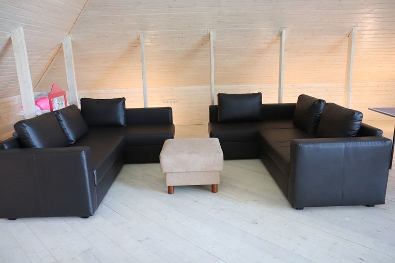Второй этаж коттеджа превращен в настоящую развлекательную площадку с теннисным столом, удобной зоной отдыха с мягкими диванами и настольным футболом. А на ухоженной территории расположен открытый сезонный бассейн с шезлонгами, приглашающий гостей к освежающему купанию под ласковыми лучами солнца.
