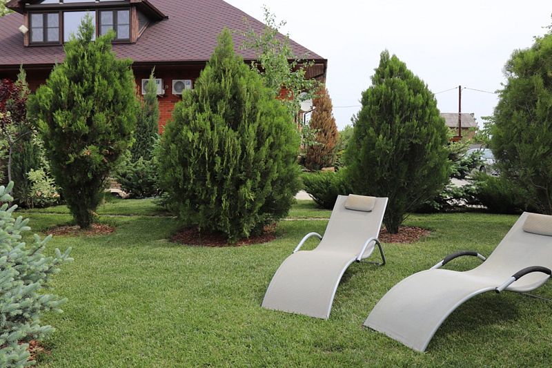 Тип бассейна: открытый бассейн, каркасный бассейнРядом с бассейном: шезлонгиПрямо за пышными кронами сосен, елей и кипарисов укрылся уютный каркасный бассейн, приглашая гостей насладиться освежающей водой и солнечными ваннами на удобных шезлонгах. Это идеальное место для полного релакса вдали от городской суеты, где можно забыть обо всём, наслаждаясь гармонией природы и умиротворяющей атмосферой.