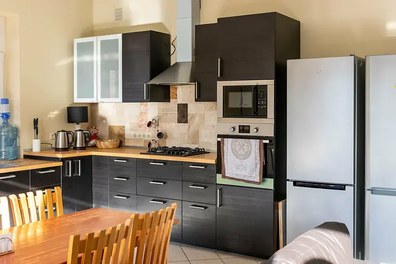 Особое внимание уделено созданию уникального кулинарного пространства. Просторная кухня оснащена современной техникой, включая духовой шкаф, плиту, микроволновую печь и холодильник, а также полным набором посуды и приборов. Гости могут насладиться приготовлением блюд как на оборудованной барбекю-зоне на свежем воздухе, так и в уютной обеденной зоне внутри дома.