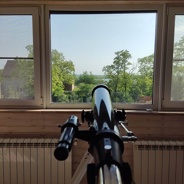 Неповторимым украшением загородного дома становится специально отведенная на втором этаже зона для любителей астрономии. Когда солнце скрывается за горизонтом, телескоп словно приглашает вас в увлекательное созерцание звездных миров.