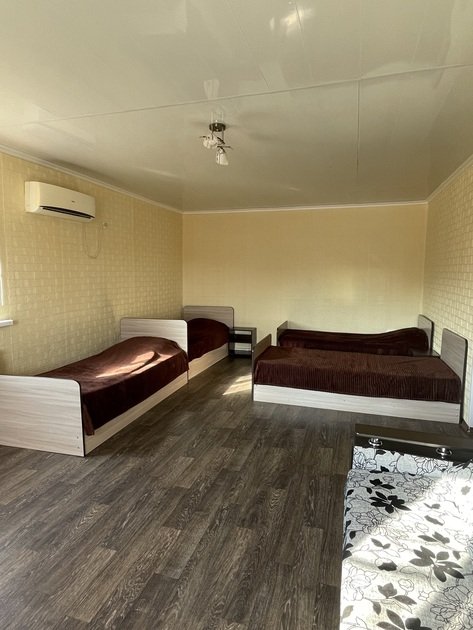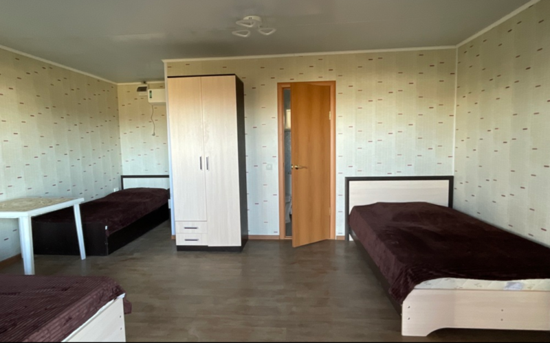 Номер площадью 22 кв. м укомплектован сплит-системой, мини-холодильником, TV, двумя полутороспальными и одной односпальной кроватью, а также душем, умывальником и туалетом.
