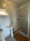 Прикроватные тумбы, шкаф, душ, умывальник и туалет.
